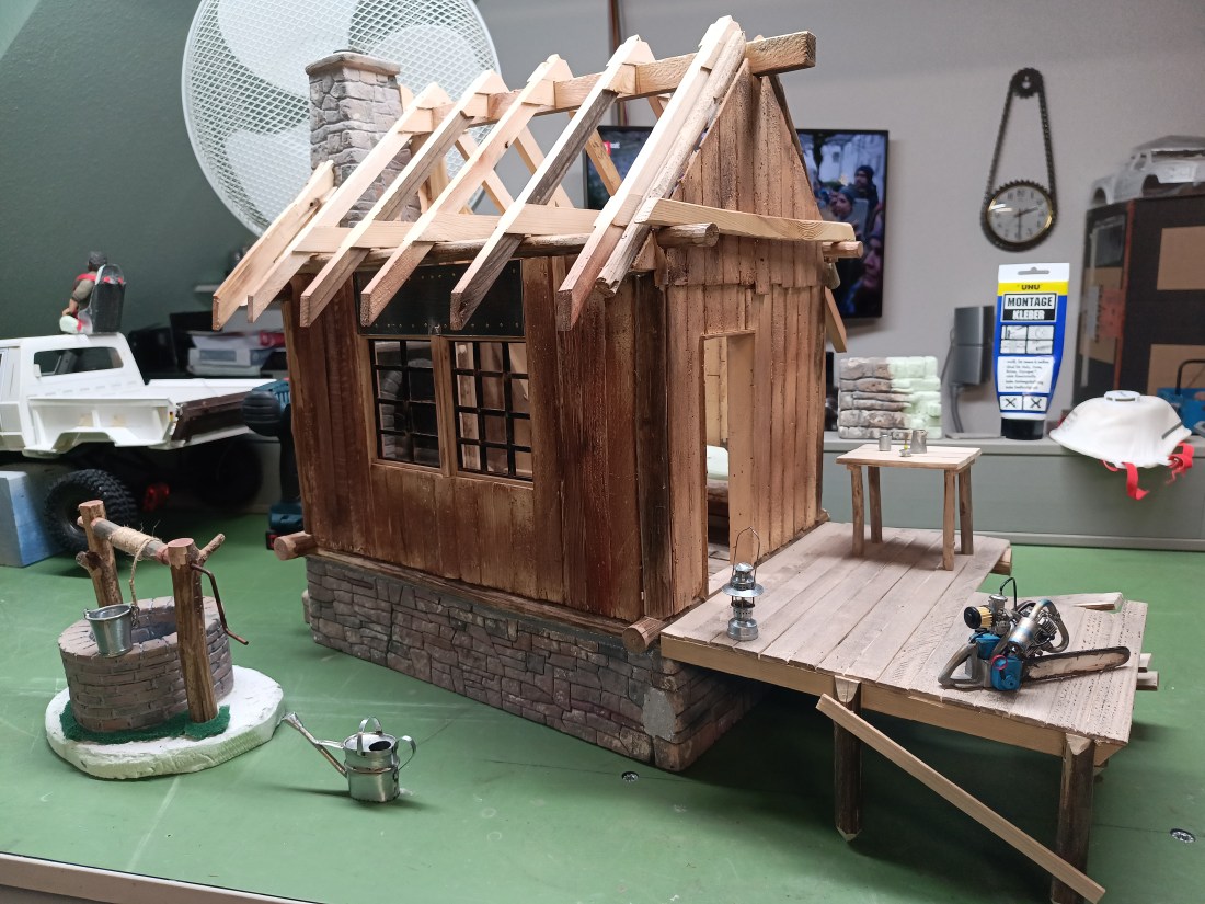 English Version Besser früher als zu spät. Abgabetermin für den Wettbewerbsbeitrag zum SuperScale ist erst Pfingsten 2026, aber mein allererster Holzbau, ein Vogelhäuschen einmal ausgenommen, macht mich doch etwas nervös. Erschwerend kommt hinzu, dass dabei Rundstämme in verschiedenen Durchmessern und Formen zum Einsatz kommen. So wird sicher jedes Holzstück ein Unikat, individuell ein- und angepasst … Weiterlesen Baubeginn der Urwaldhütte, Giebelwand vorne