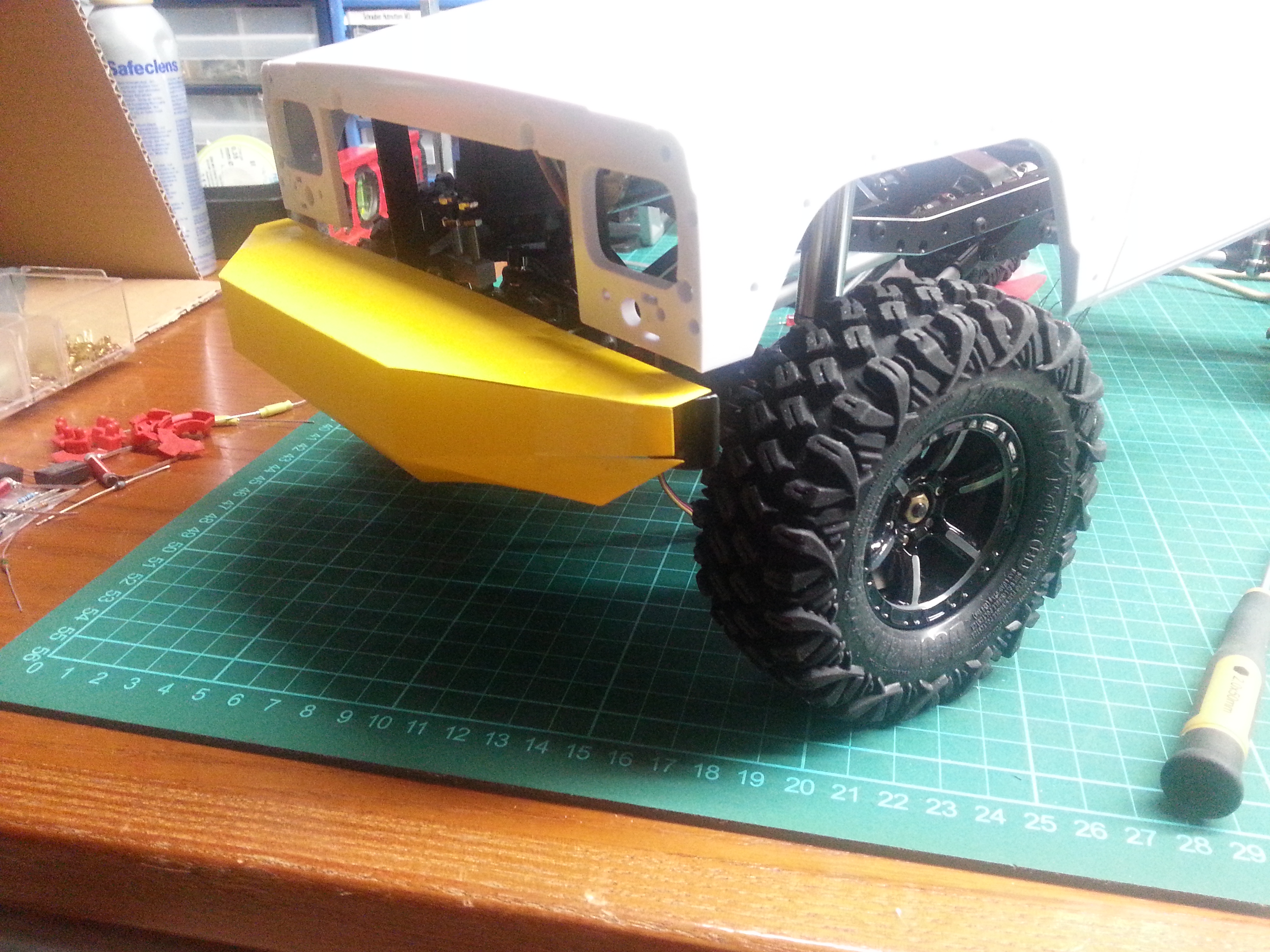 Die kleine Defender-Stoßstange dient bis auf weiteres als vorläufiger Träger