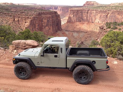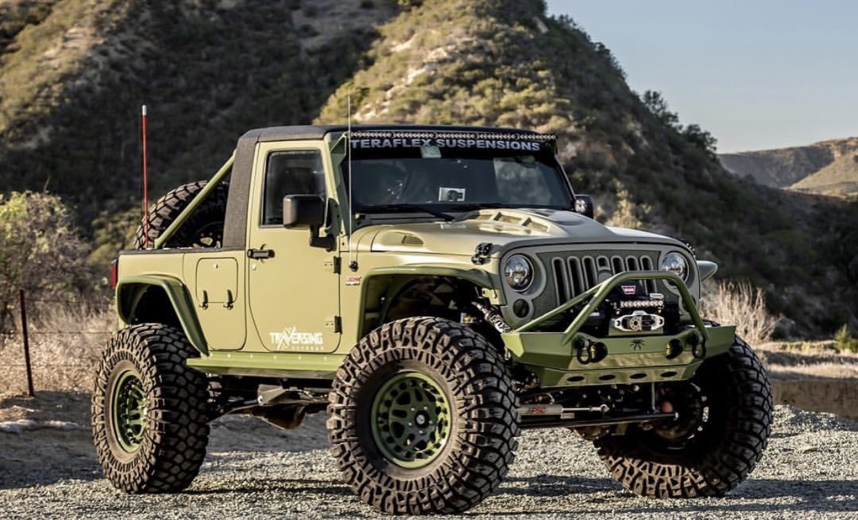 Natürlich gibt es auch eine Ausnahme, auf deren Basis die Fa. AEV einen Umbausatz anbietet und der zudem als Karosserie verfügbar ist. Sie basiert auf einem zweitürigen Jeep Wrangler JK. Vorweg, der augenscheinlichste Unterschied zwischen beiden Modellserien ist die Ladefläche. Ich möchte nur die obige Ausführung mit der abgesetzten Pritsche. Nachfolgende Ausführungen zeigen Umbauvariante von AEV mit integrierter Pritsche. Auch schön, aber nach meiner Betrachtungsweise kein Pickup.