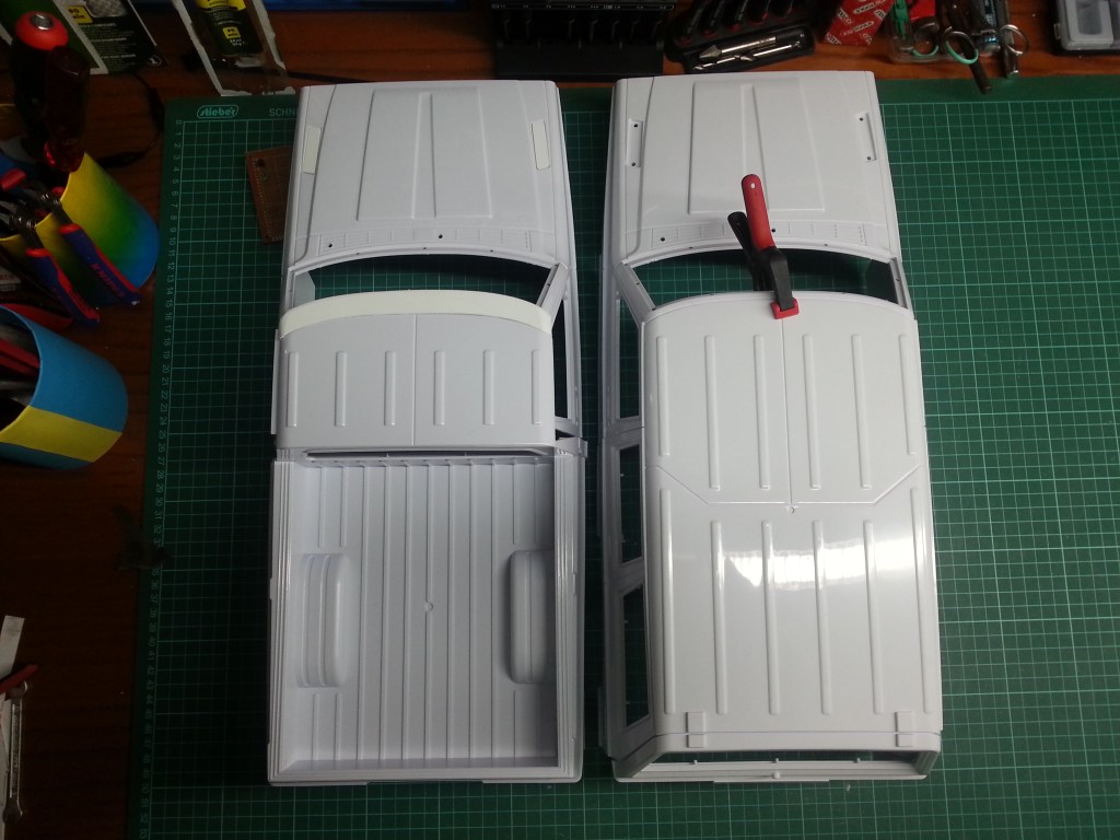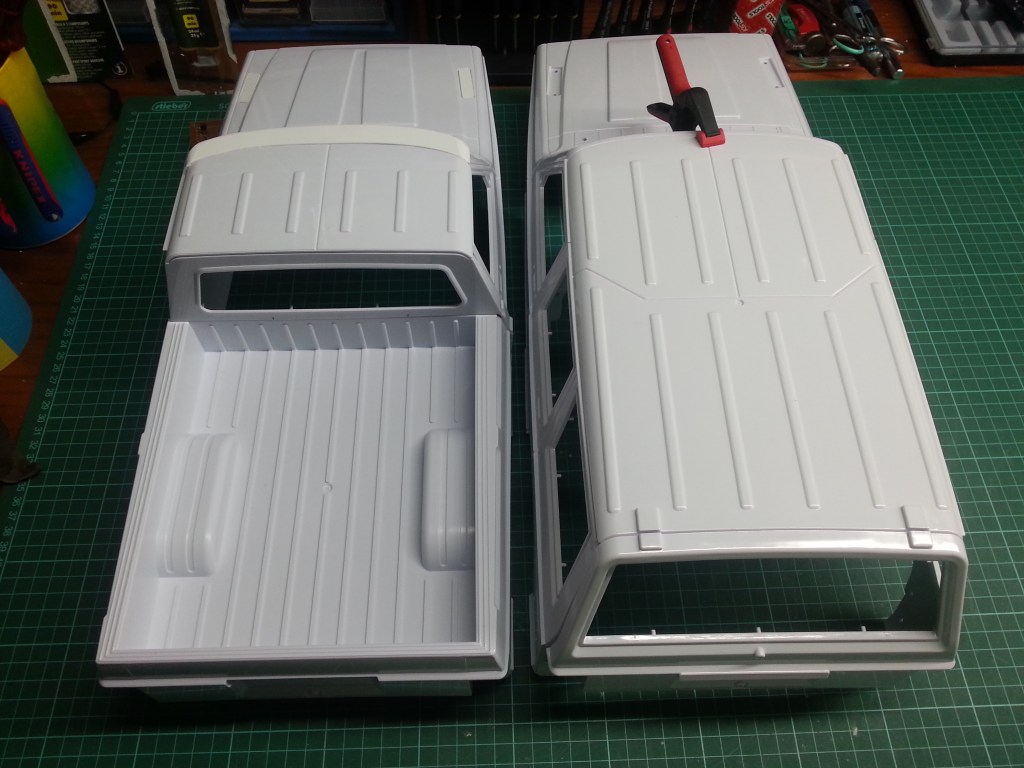 In einem weiteren Schritt wird das überlange Dach des Cherokee auf Comanche Länge gekürzt. Bleiben jetzt nur noch zwei große Bauteile um die Rückwand zu schließen.