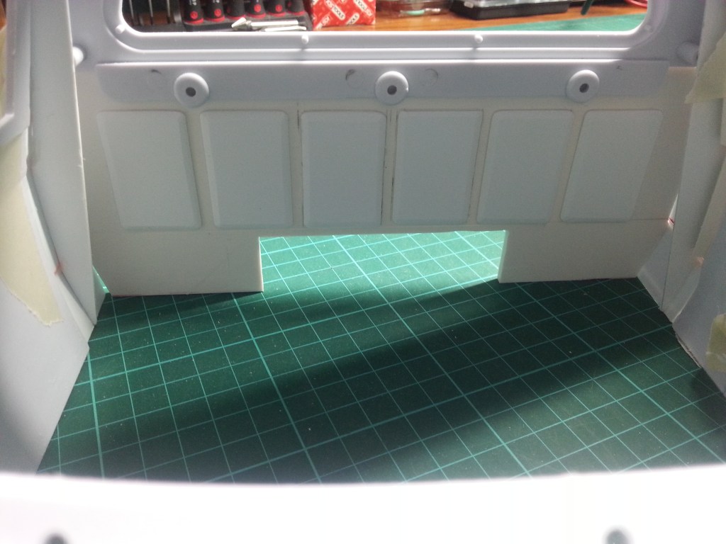 Das Fahrerhaus besteht ja inzwischen aus sieben Einzelteilen. Drei Teile davon gehören zum Baukasten, Karosserie, Dachelement und das Rückfenster. Zwei Seitenteile, die Rückwand und der untere Rückwandabschluss wurden individuell hergestellt. Im folgenden Bauabschnitt müssen diese selbst erstellten Einzelteile, mit dem Rest der Bauteile verklebt werden. Um auch zukünftig Zugang zum Innenraum zu haben, wird im Endausbau der Fahrerhausboden horizontal vom Fahrerhaus trennbar sein.