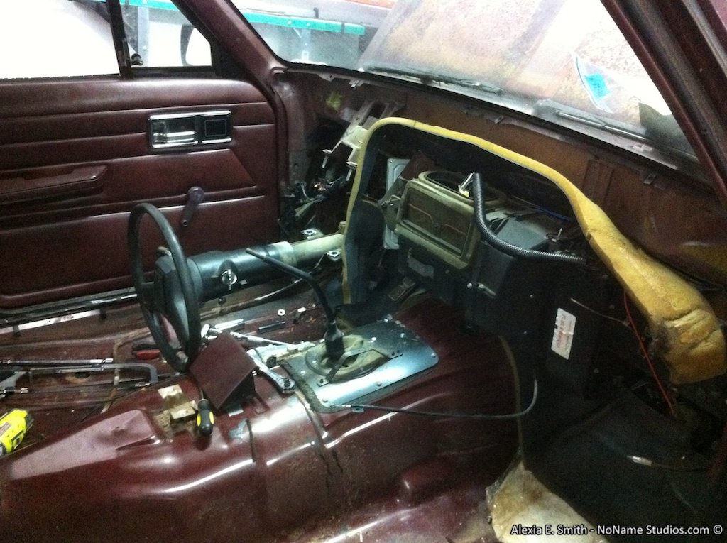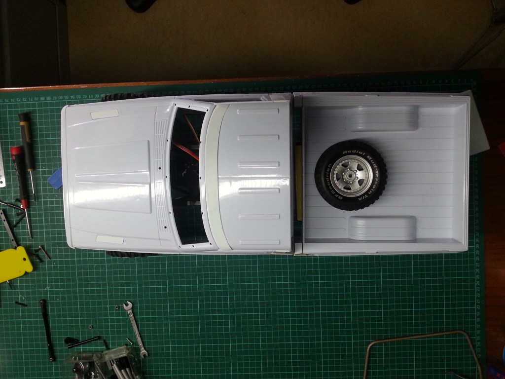 Die Ladefläche wird komplett ausgesägt, verbreitert und soweit absenkt wie technisch möglich. Technisch möglich bedeutet in diesem Fall, soweit dies die geschwungene Rahmenform zulässt, nachfolgend zu sehen. Der zu Anfang verbaute Rahmen hatte hier gerade Rohre und liess eine maximale Absenkung bis zur Unterkante der Ladeklappe zu. Für den zweiten Comanche wird das weitere Modifikationen am Rahmen erforderlich machen, wie weiss ich jetzt aber noch nicht.