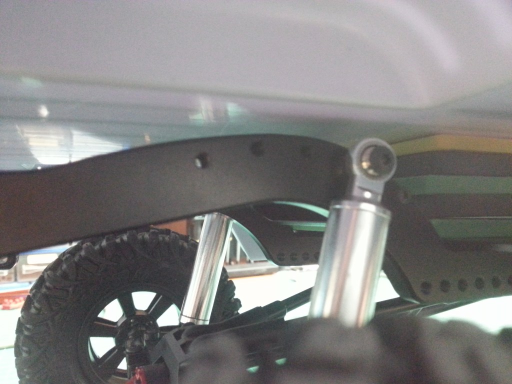 Die derzeit eingebauten Dämpfer sind 95 mm lang und so abgestimmt, dass sie auf einen maximale Länge von 80 mm abgesenkt wurden. Dies soll auch die vorläufige Variante bleiben, dann aber mit sichtbaren Federpaketen. Optisch macht das auch mehr her, als die derzeit geschlossene Ausführung.