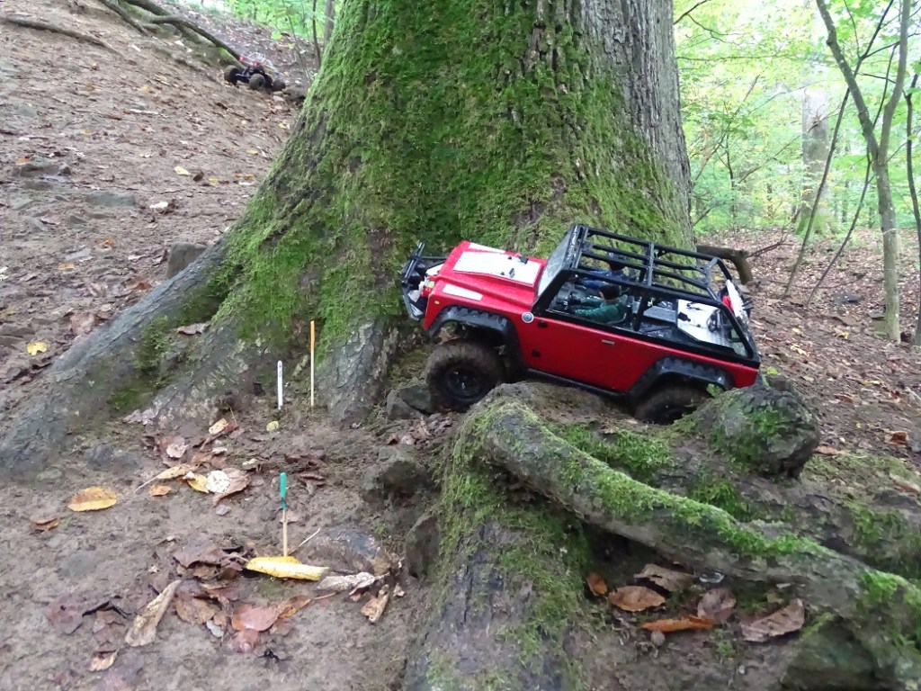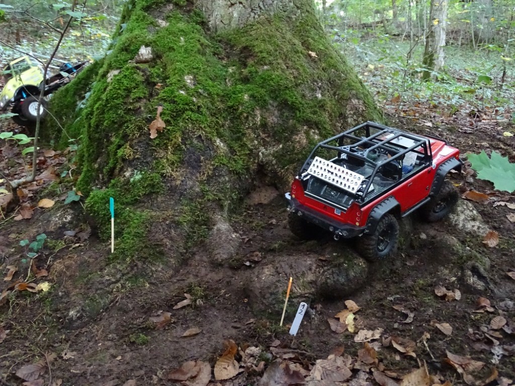 Meine erste Wertungsfahrt wurde von Kerstin83 fotografiert. Also sicher nicht wegen mir, es ist wohl die Verbundenheit mit Ihrem liebevoll aufgebauten Fahrzeug, dem auch ein eigener Beitrag innerhalb des Rock Crawler-Forums gewidmet ist. Mit tiefer Zerknirschung muss ich daher gestehen, dass durch meine Schuld der kleine zweimal eine Böschung hinunterkullerte. Den glücklicherweise einzigen Schaden trug der Fahrer davon, einen seelischen!