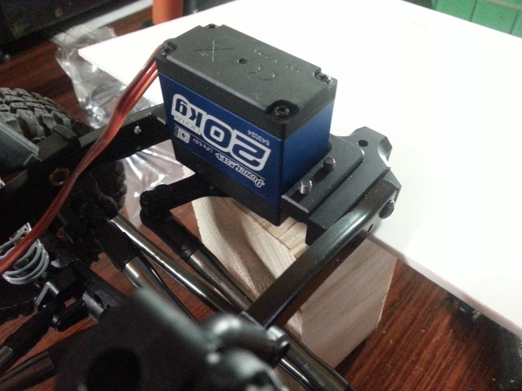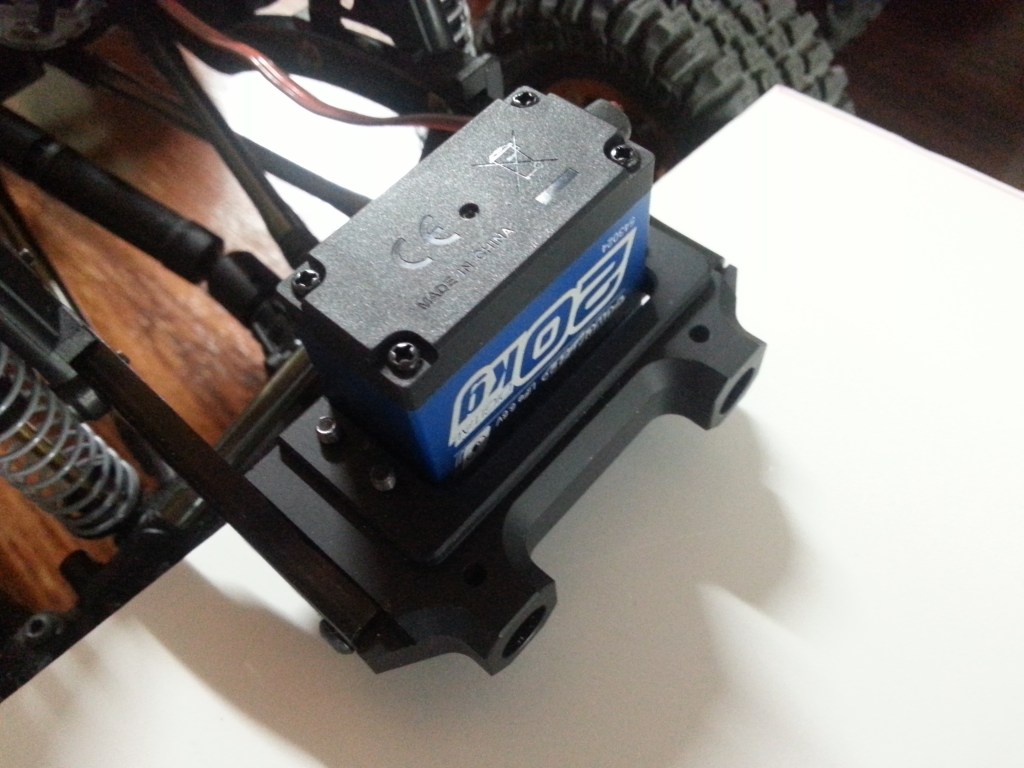 Abschließend die für heute letzte Baustelle am Vorderwagen. Austauschteil 3, wieder Kunststoff gegen Aluminium. Hier habe ich mich für einen kleinen unbekannten Hersteller entschieden, weil die Möglichkeit ein Lenkservo zu befestigen, integriert ist. Auch hier eine perfekte Ausführung, mit sauber geschnittenene Gewinden. Die einzig erforderlich Anpassung bei dieser Variante, ist die Länge des Lenkgestänges. Es muss etwas verkürzt werden, ein gut lösbares Problem also. Das ist hier aber noch nicht geschen, noch steht der Servohebel nicht in Mittelstellung …