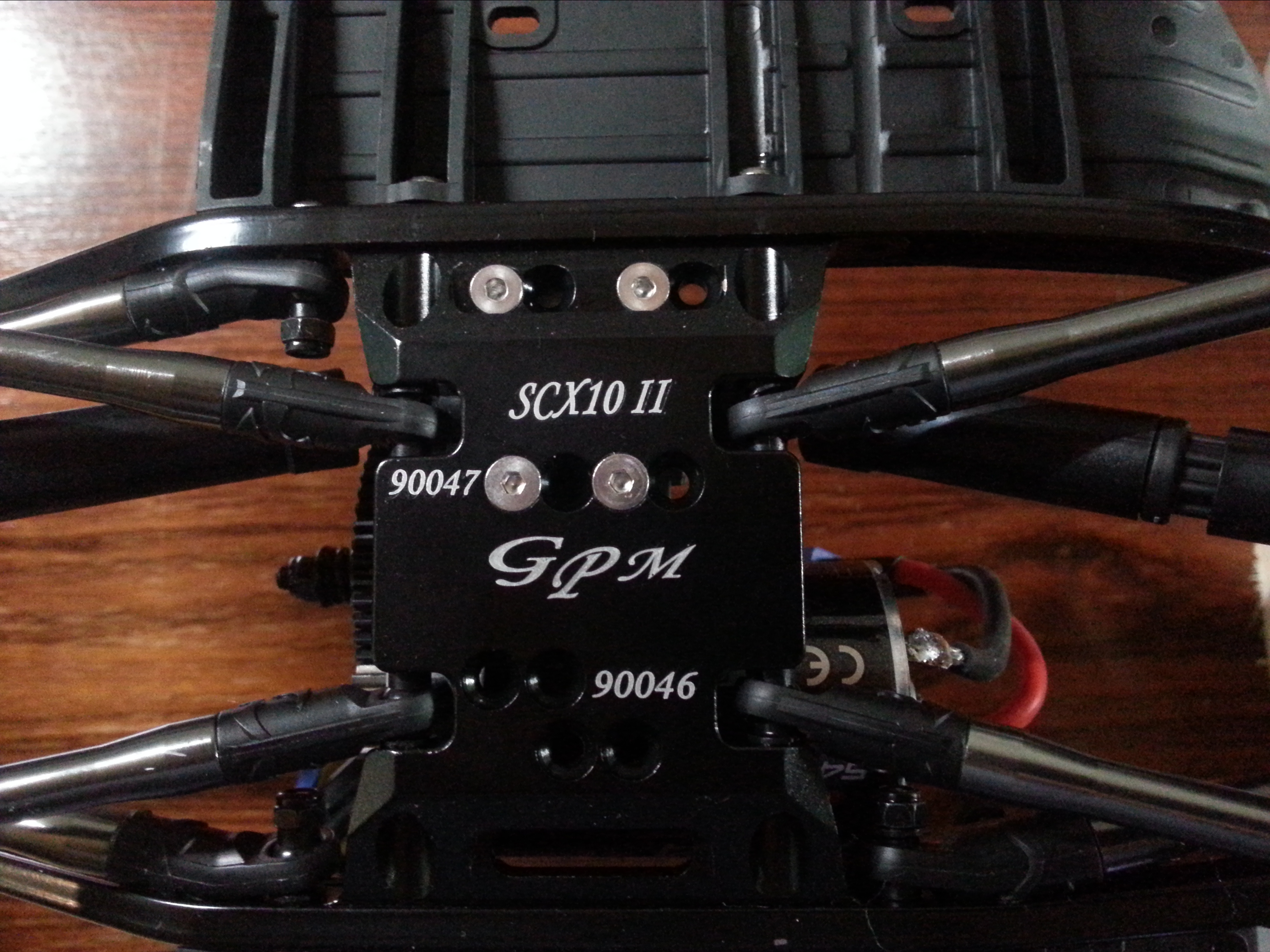 Die Rahmenverwindung beim Überfahren goßer Höhenunterschiede, durch die aus Kunststoff hergestellten Traversen war mir einfach zu groß. Das war bei aufgesetzter Karosserie schon ein ungewöhnliches Bild, wenn sich die Karosserie langsam vom Rahmen entfernt. Durch zunächst drei neue Bauteile wurde die Verwindung deutlich reduziert. Gleichzeitig war es ein Vorgriff auf die zukünftig vorgesehene Umrüstung auf Frontmotor. Der erste Schritt begann mit dem Austausch der Skid Plate. Hierauf ruht der Motor und Getriebe, gleichzeitig sind die Streben der Vorder- und Hinterachse dort befestigt. Diese Streben werden im englischen Links genannt.