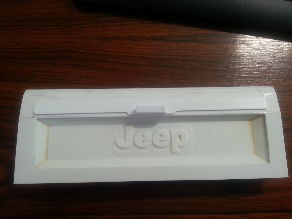 Um die Bauteilherstellung an der Aussenseite abzuschliessen, war noch ein sehr kleines Teil erforderlich. Hier habe ich mich aus dem Fundus des Spenderfahrzeuges, dem Cherokee bedient. Die Abdeckung der Kennzeichenbeleuchtung wurde auf das notwenige Maß gekürzt, erhielt einen neuen Abschluss und mutierte zur Heckklappenentriegelung meines Comanche.