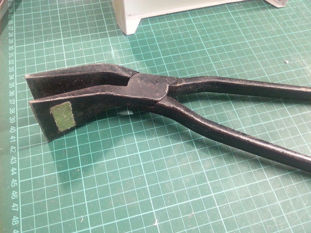 Um die sehr schmalen Streifen überhaupt exakt greifen und biegen zu können, musste ein spezielles Werkzeug aus der Spenglerwerkstatt hervorgeholt werden. Eine sogenannte Falzzange aus der Blechbearbeitungsbranche. Nicht unbedingt eine ideale Wahl, aber dafür brauchbar.