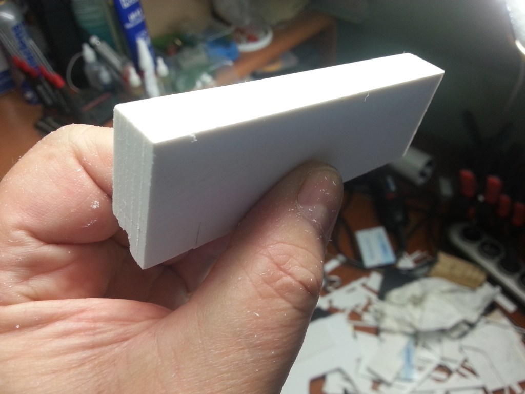 Then there was no more postponement. The loading area would never be finished without this construction step. So I just started. After the obligatory measurement, 5 layers of 2.5 mm thickness each were glued together. Again, I was able to partially use PS remnants. I always let the fully glued parts dry for several hours before further processing.
