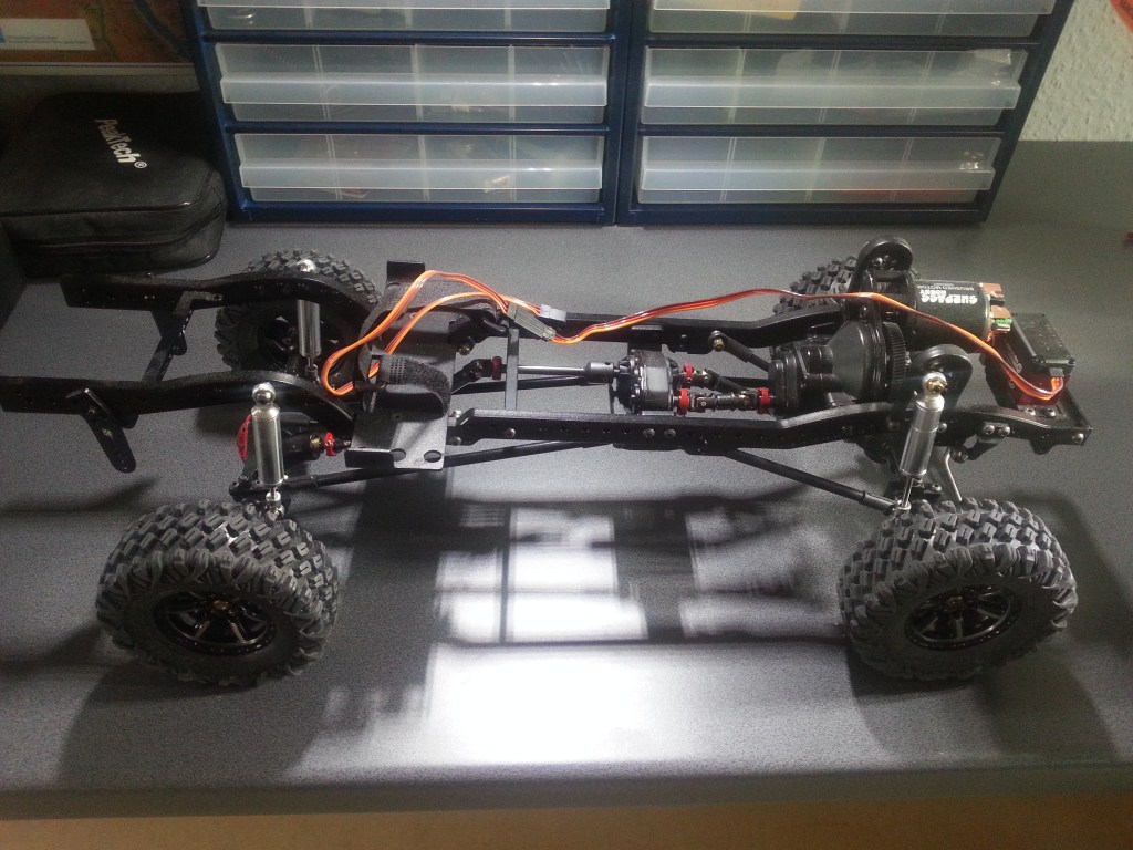 Das bildschöne Boom Racing-Fahrgestell war seit diesem Zeitpunkt nahezu fahrfertig montiert, im Regal geparkt.