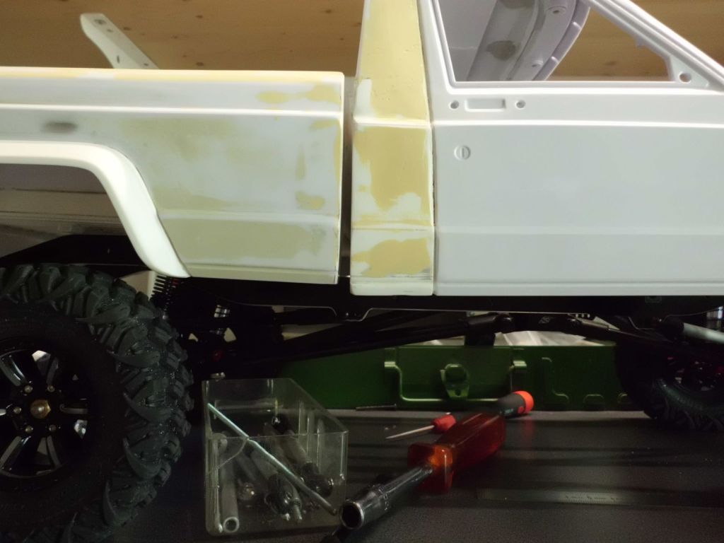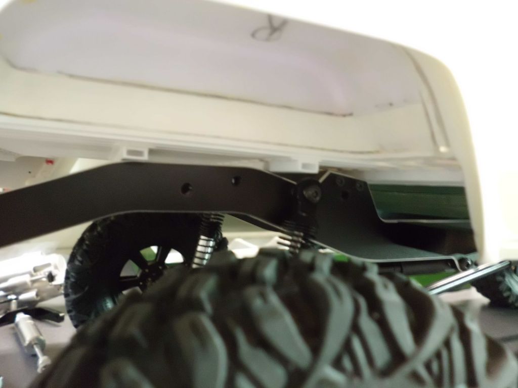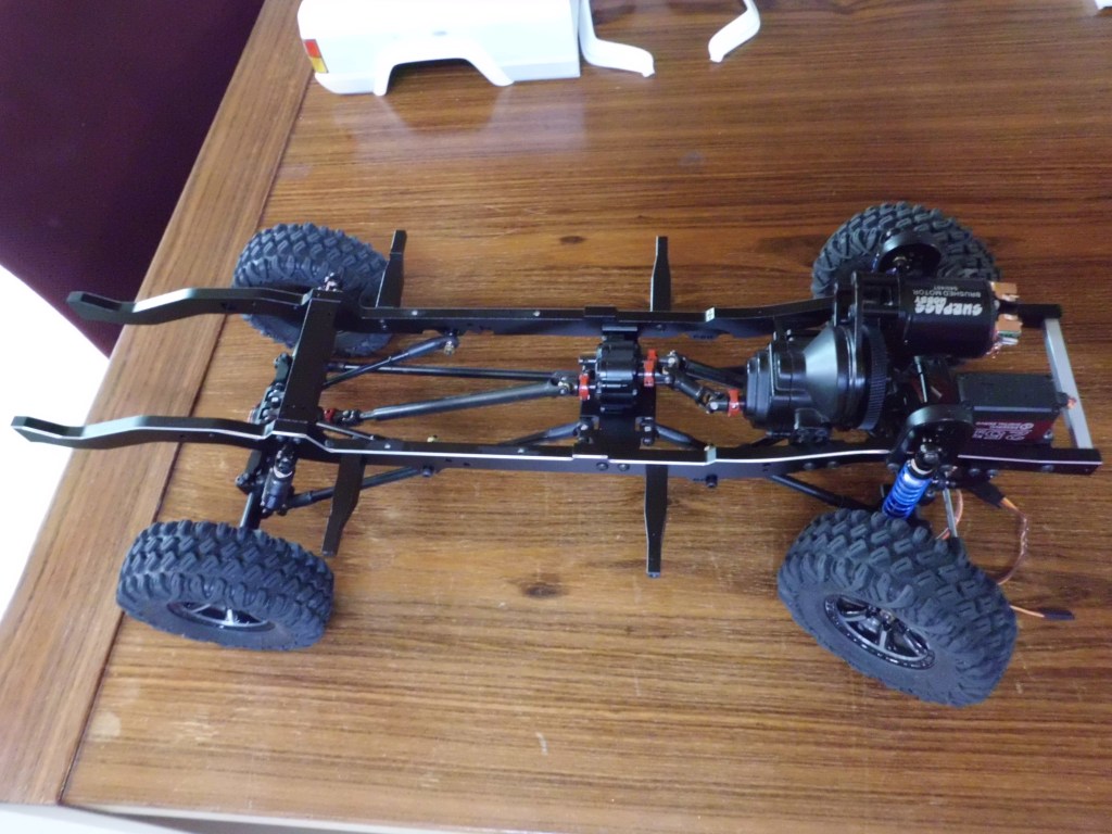 Die bisherigen Baufortschritte sind erkennbar. Dabei wurden auch gleich kürzere Team Raffee-Dämpfer eingebaut. Vorläufig hinten 70 mm und vorne 80 mm. Bisher waren 90 mm Dämpfer montiert. Damit war der Wagen aber zu hochbeinig.