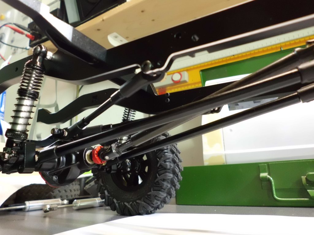 Die fertig montierte und gedrehte Hinterachse in der neuen Einbaulage.