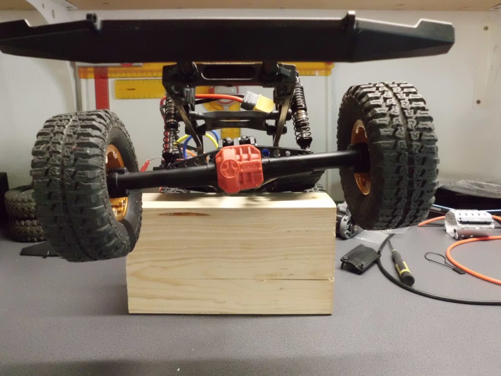Die ersten Fahrtests mit dem SCX10 waren eine Freude. Fast schon perfekt, für einen Bausatz. Daher wurden auch an diesem Chassis erste Optimierungen durchgeführt. Seitdem wird er gelegentlich zum Spielen und Entspannen bewegt. Jetzt war im Forum ein Zweigang-Getriebe mit der Optik eines V8-Motors zu bekommen. Unbenutzt, weil für das dortige Modell zu groß. Um endlich den SCX10 Motor samt Getriebe aus dem Fahrzeuginneraum zu verbannen, habe ich den Kauf gewagt. Die Optik ist eine Offenbarung und passt perfekt in das Chassis, genauso wie unter die Cherokee-Karosserie. Die Kombination ist leider noch nicht fertig, ihre Zukunft ist aber bereits vorbestimmt. Daraus entsteht eine Zug- und Servicefahrzeug für den Comanche Truggy.
