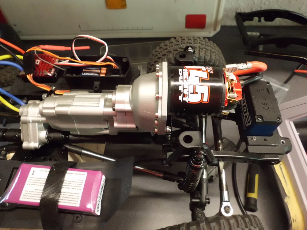 My expectations regarding the fast usage had been fulfilled. So the SCX10 had completed its first test drive only a few days after its installation. Surprisingly good, as I would like to repeat once again. Already during assembly, the centrally located engine and transmission unit had disturbed me. A typical scale crawler has its engine in the front. However, this also required the conversion of other components, such as battery holder and steering servo. I had accepted this challenge without hesitation. The way to a quickly ready to use crawler was over for the time being.