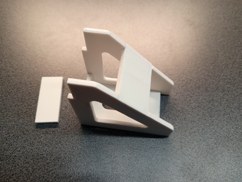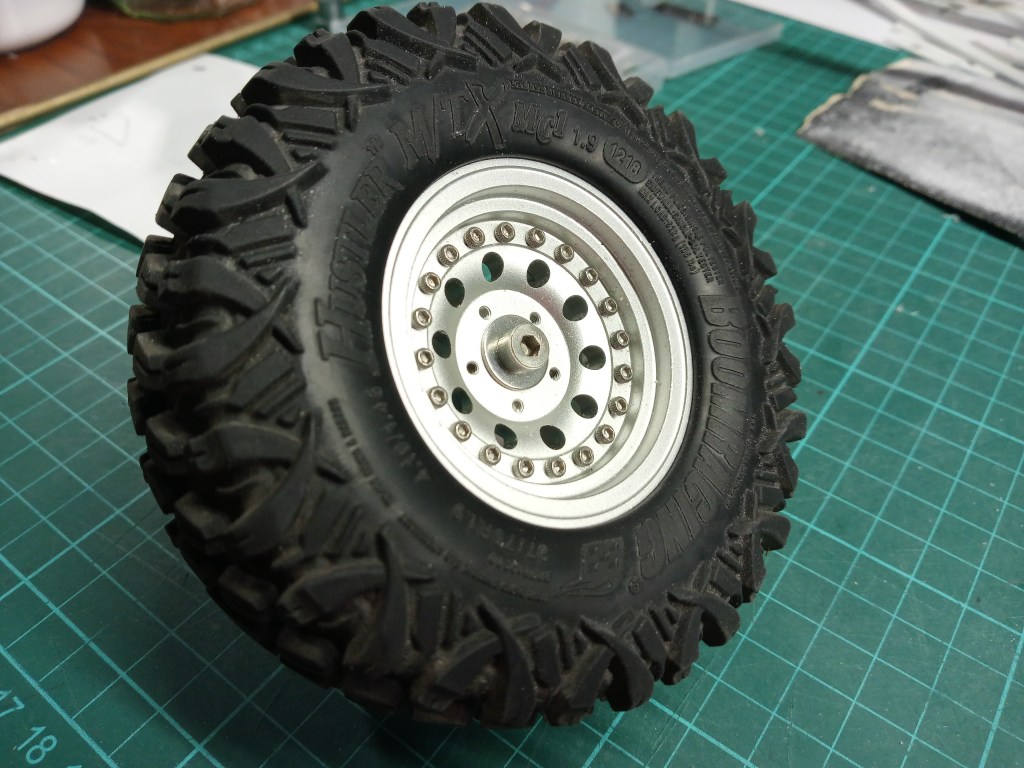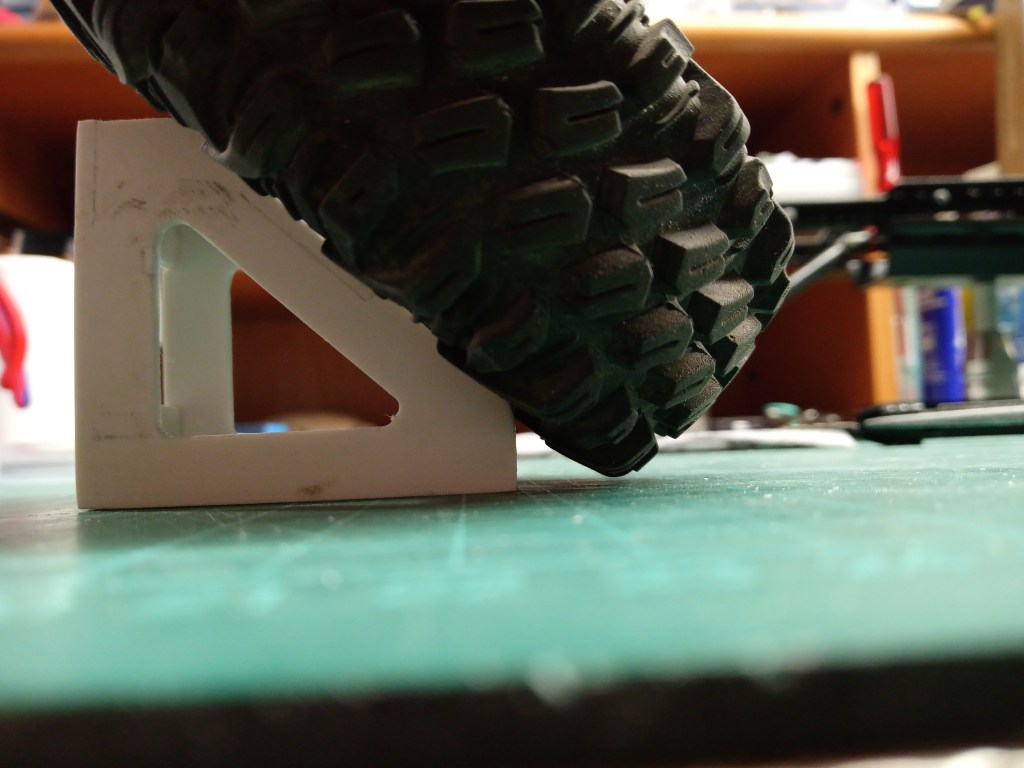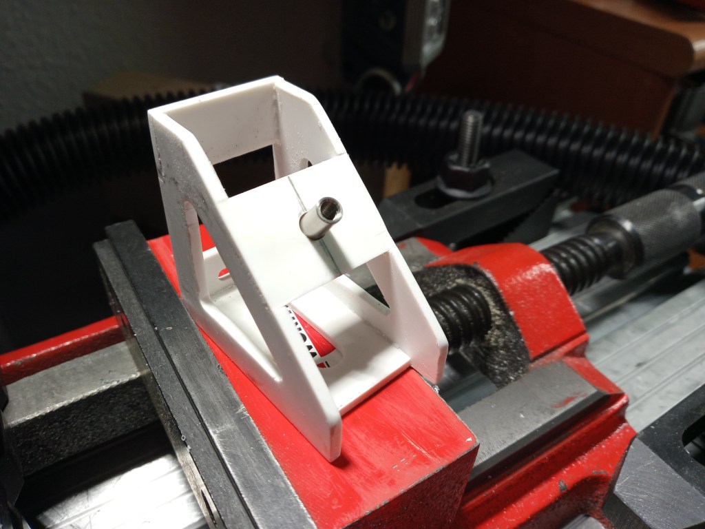 A 19 mm square mount from GPM, as a spare part for a wheel carrier of the Axial Bomber RR10, was milled flat. The machined part on the left and the original part on the right.