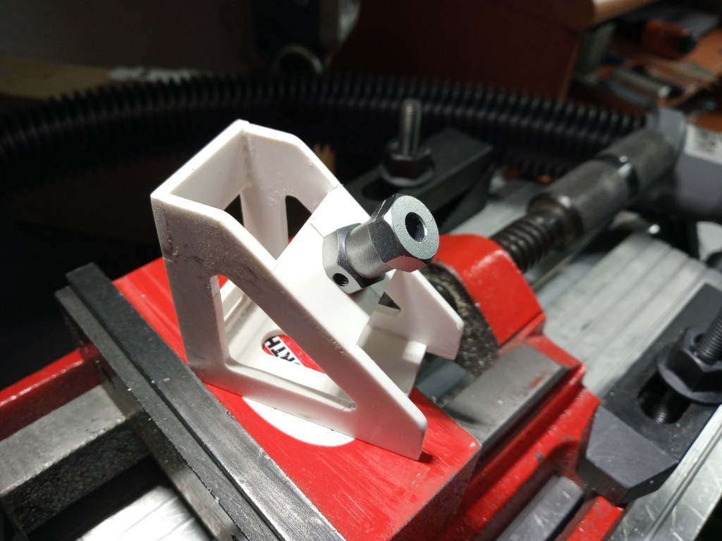 Here you can now see the assembly on the bottom side. The collar of the sleeve nut provided a stop, secured with two grub screws. The actual hexagonal socket was put on.