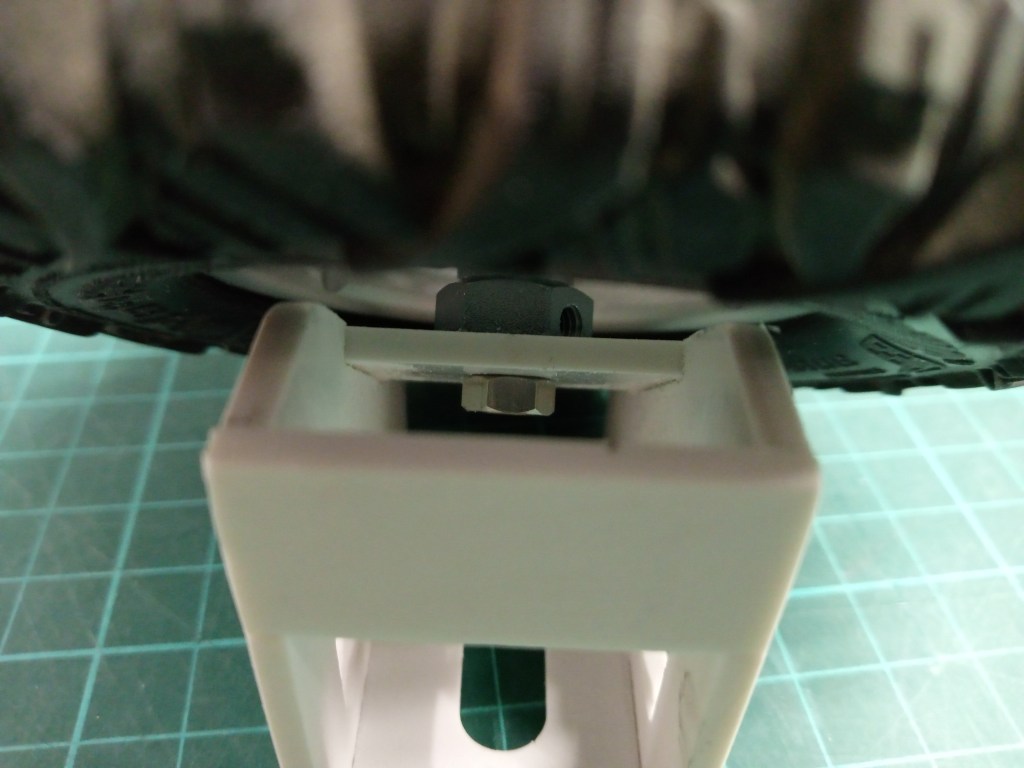 Von oben mit einer Inbusschraube gesichert. Diese Mutter erhält noch einen Schlitz, damit ein als V gebogener Draht als Knebel zum Öffnen eingeklebt werden kann.