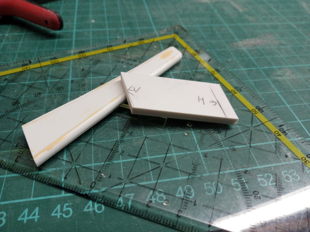 At the end of my last post, I had shown two microscopic triangles on which once the mast lamps should be positioned. Too tiny in detail and with maximum challenge in building. Therefore now to the development of my further idea. It began as so often before. Two plate remnants were glued on top of each other and then milled off at an angle on the long outer sides. How did I get along before without my coordinate table? 😄