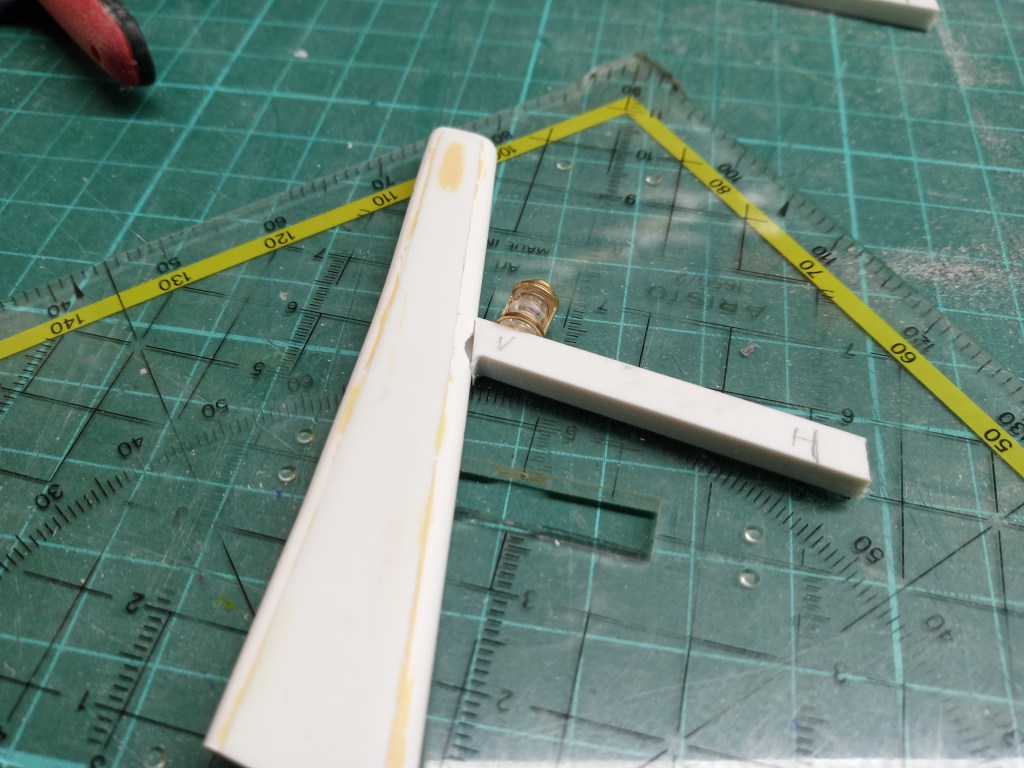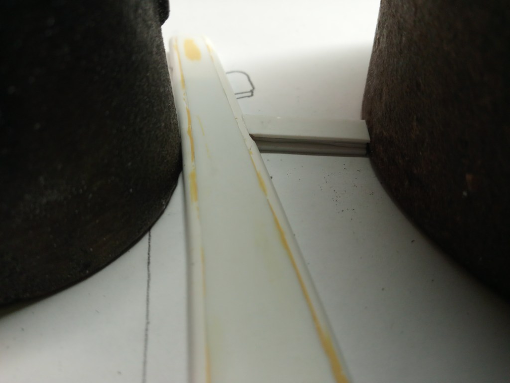 Der vordere Lampenträger schon etwas gekürzt und für die Klebung fixiert.