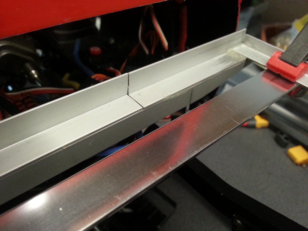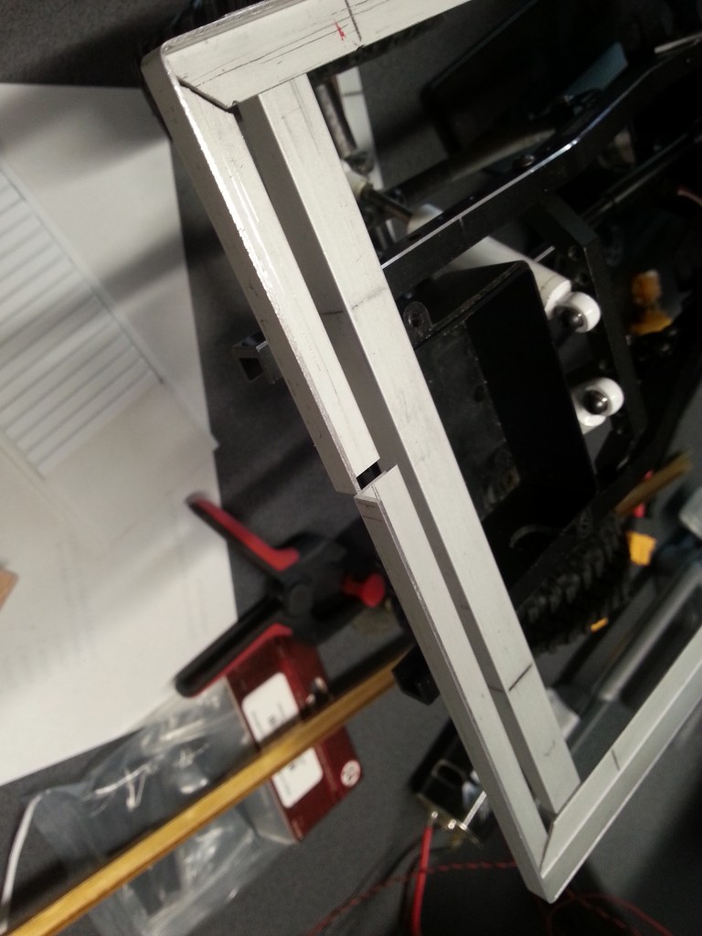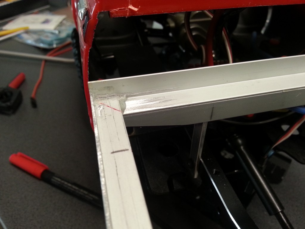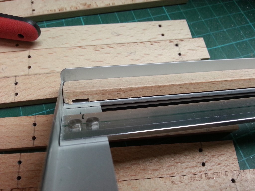 …und hinteren Alu-Winkel jeweils 4 mm ausgesägt. Hier zur Darstellung etwas aufgeweitet.