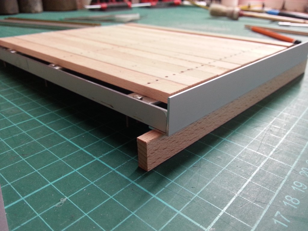 To prevent the edge of the loading area from protruding over the wooden planks, a router and file had to be used to correct the height here as well. Unfortunately, the angle profile could not be obtained at the desired height.