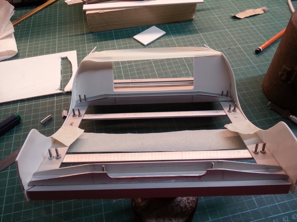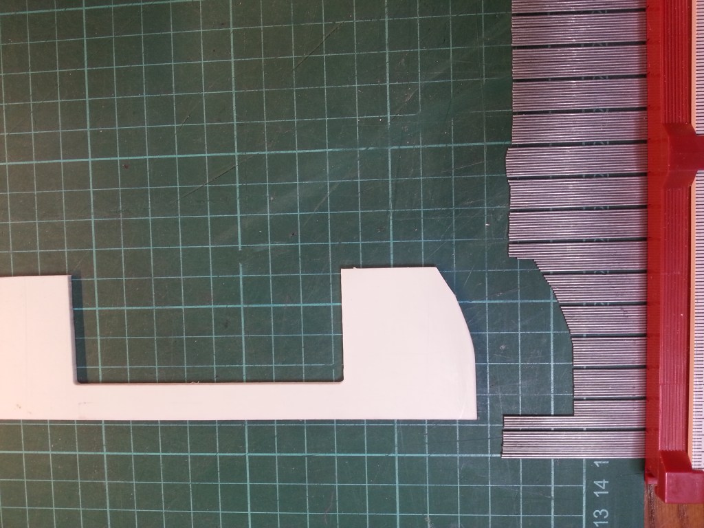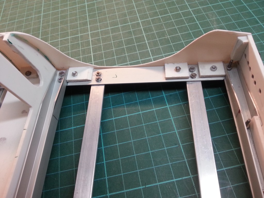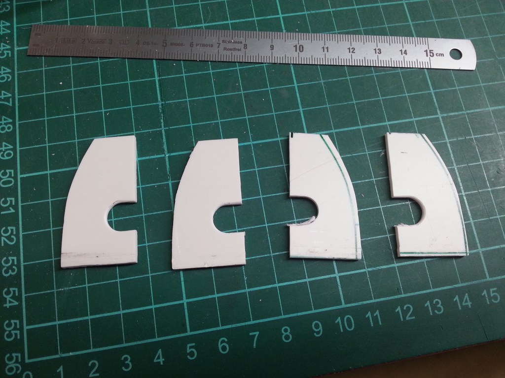 Weitere Teile zur Stabilisierung der Seitenverkleidungen und des Akkufaches, entstanden wieder auf dem Koordinatentisch. Alles noch mit Materialreserven, um einen möglichst passgenauen Sitz, durch einschleifen, zu schaffen.