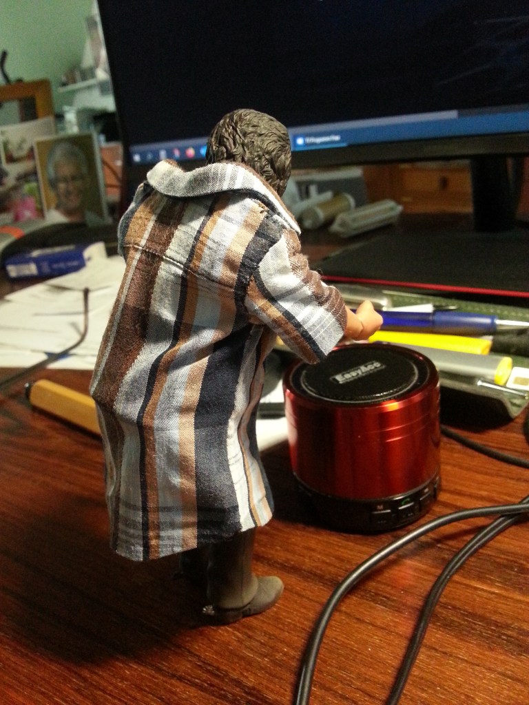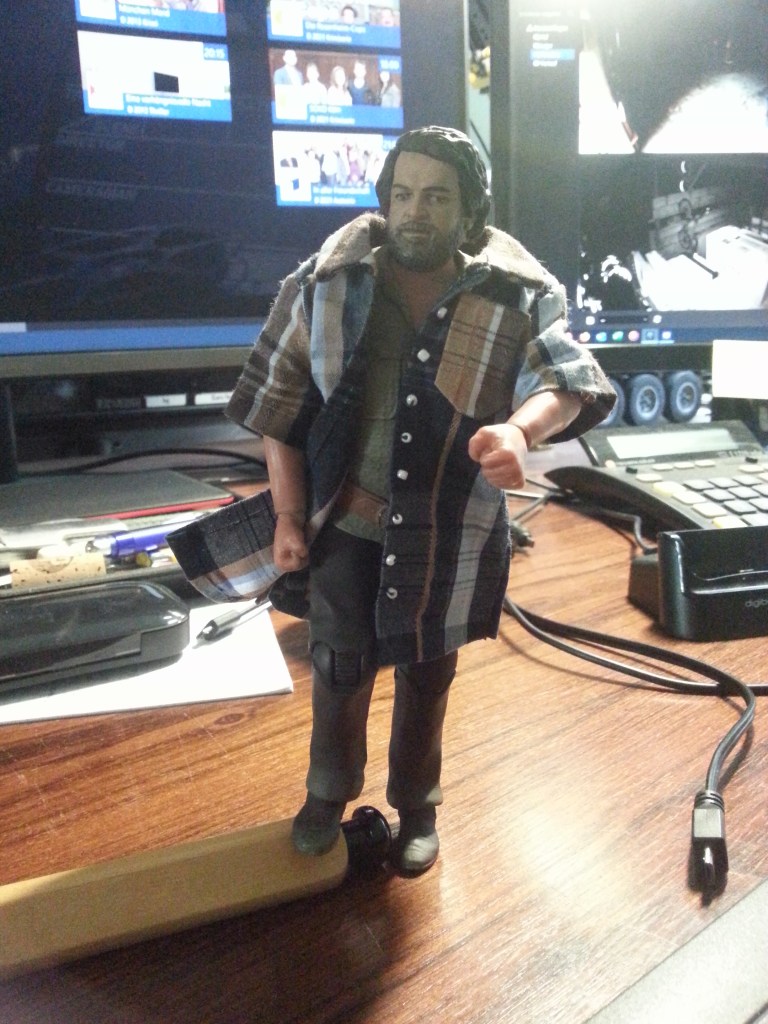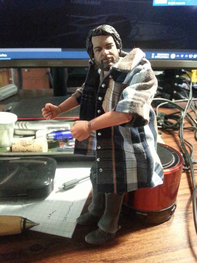 Finally a driver was brought on board. Except for the beard, we are one weight class and that fits! The fancy outerwear is a former shirt of mine. My daughter shrunk it slightly and gave it to me for Christmas 😀.