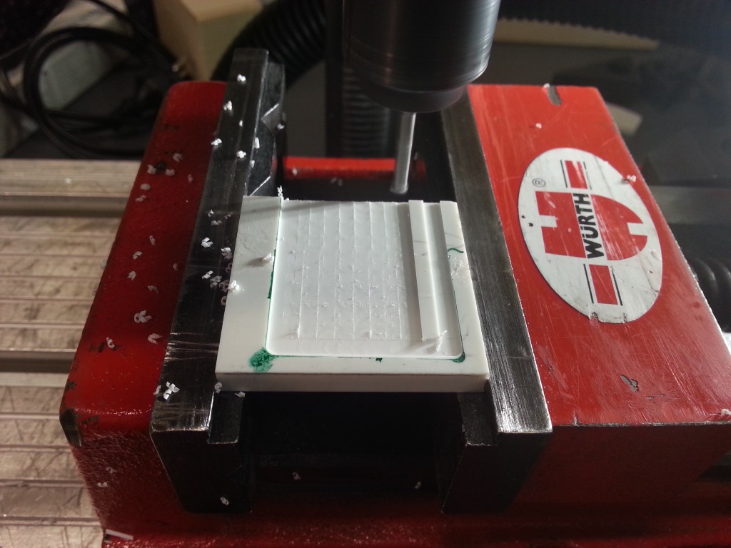 Die Befestigung erfolgte mit zwei Stahlschrauben M2, die mit insgesamt vier Muttern befestigt wurden. Das verhinderte ein nachträgliches Verdrehen des Winkels, hier zu sehen.