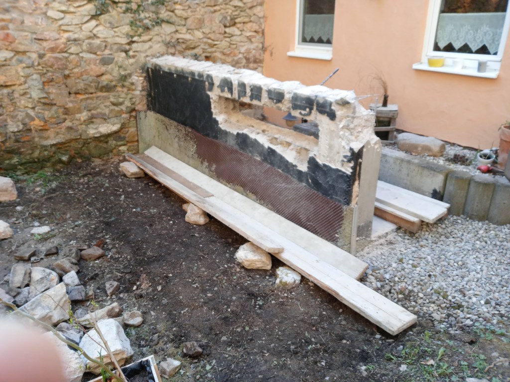 Hier ausnahmsweise einige Bilder aus meinem privaten Umfeld, die derzeit meine volle Aufmerksamkeit haben. Die alte Mauer zum Gewölbekeller wird zurückgebaut.