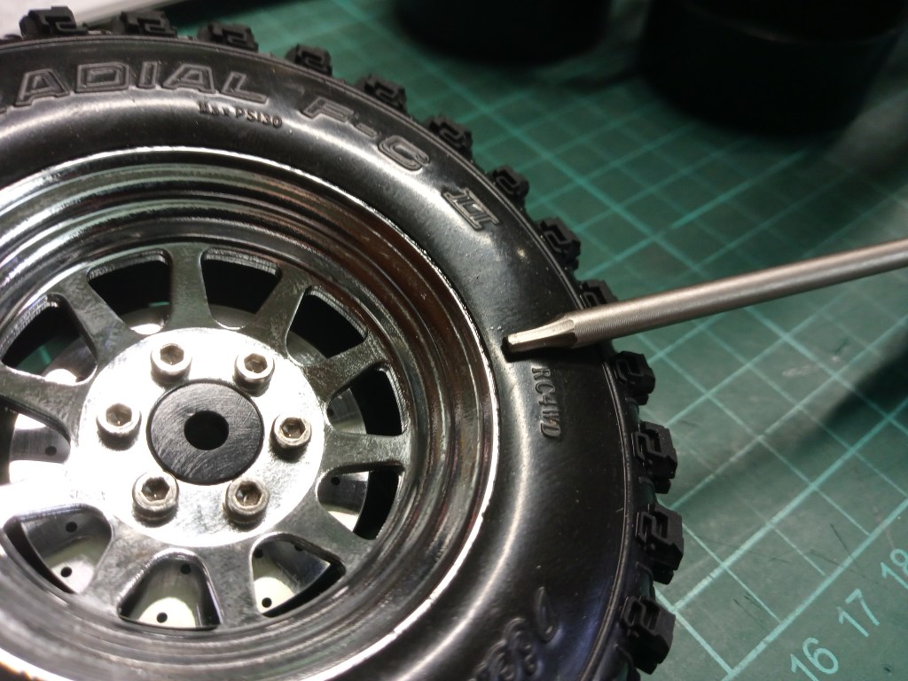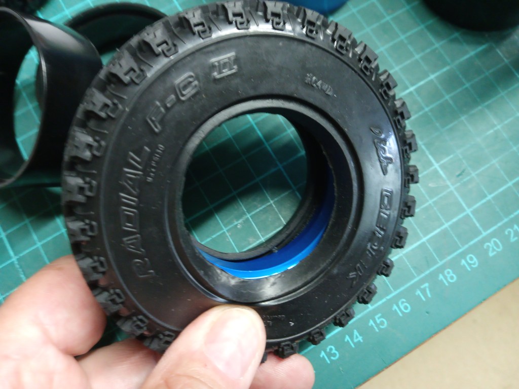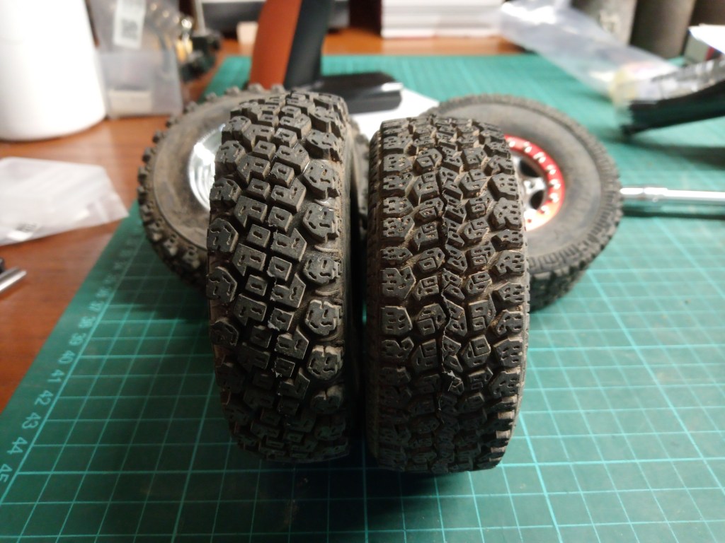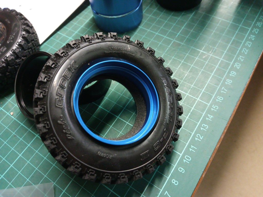 Die Original-Einlagen von RC4WD sind eher nicht für den Fahrbetrieb geeignet. Sie sollen wohl eher die Form der Reifen in der Verpackung stabilisieren. Schon das bisherige ca. 2,5 kg schwere Fahrgestell überforderte die Einlagen. Keine Seitenstabilität und starke Faltenbildung an den Seitenflanken bei griffigem Untergrund. Eine Kontaktaufnahme mit der Fa. RC-HP löste dieses Problem. Für die Dick Cepek F-C II bekomme ich auf das Fahrzeuggewicht abgestimmte Einlagen hergestellt. Vorlagen sind bereits vorhanden. Im Falle der Dick Cepek Trail Country, werde ich einen Reifensatz als Muster zu Verfügung stellen und bekomme auch dafür passende Einlagen, ein toller Service! Ich werde in Kürze weiter berichten.