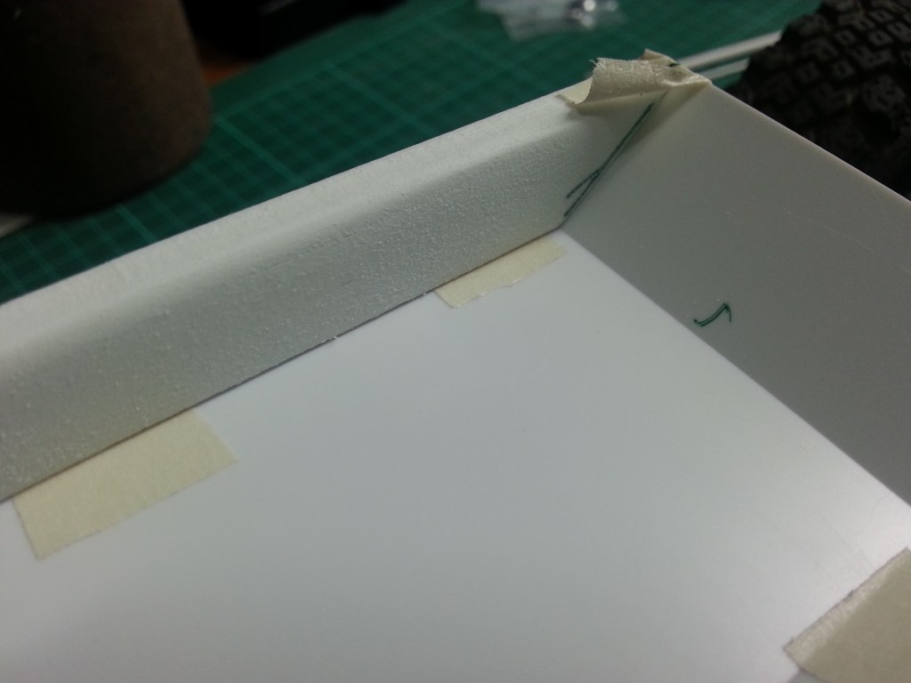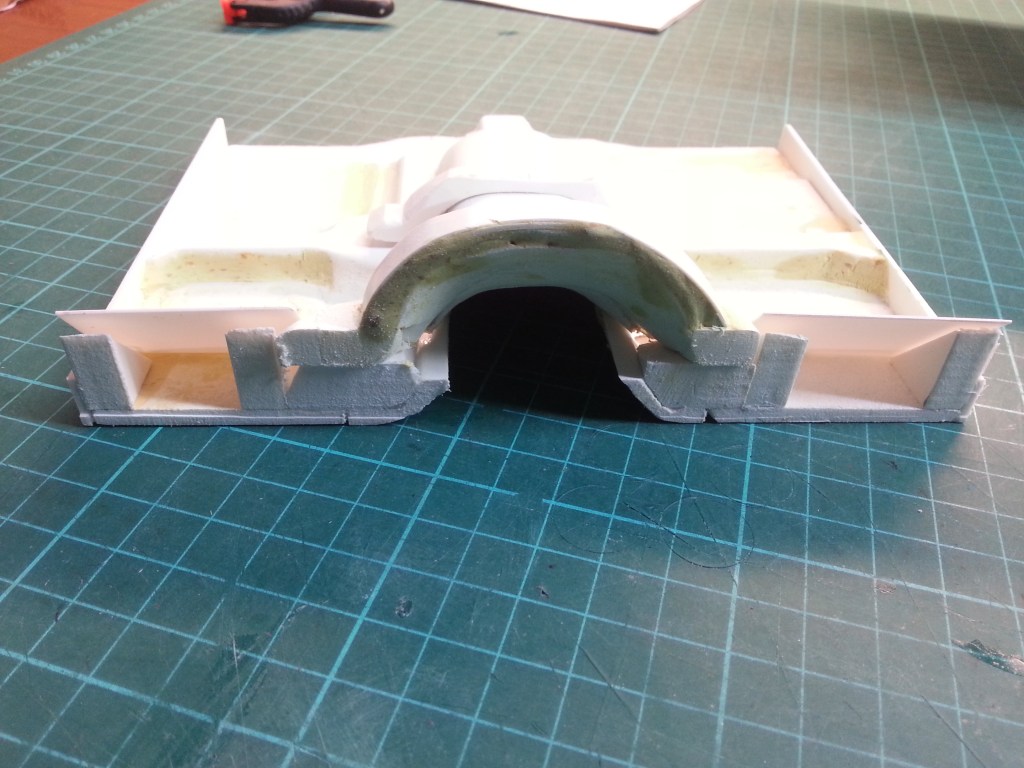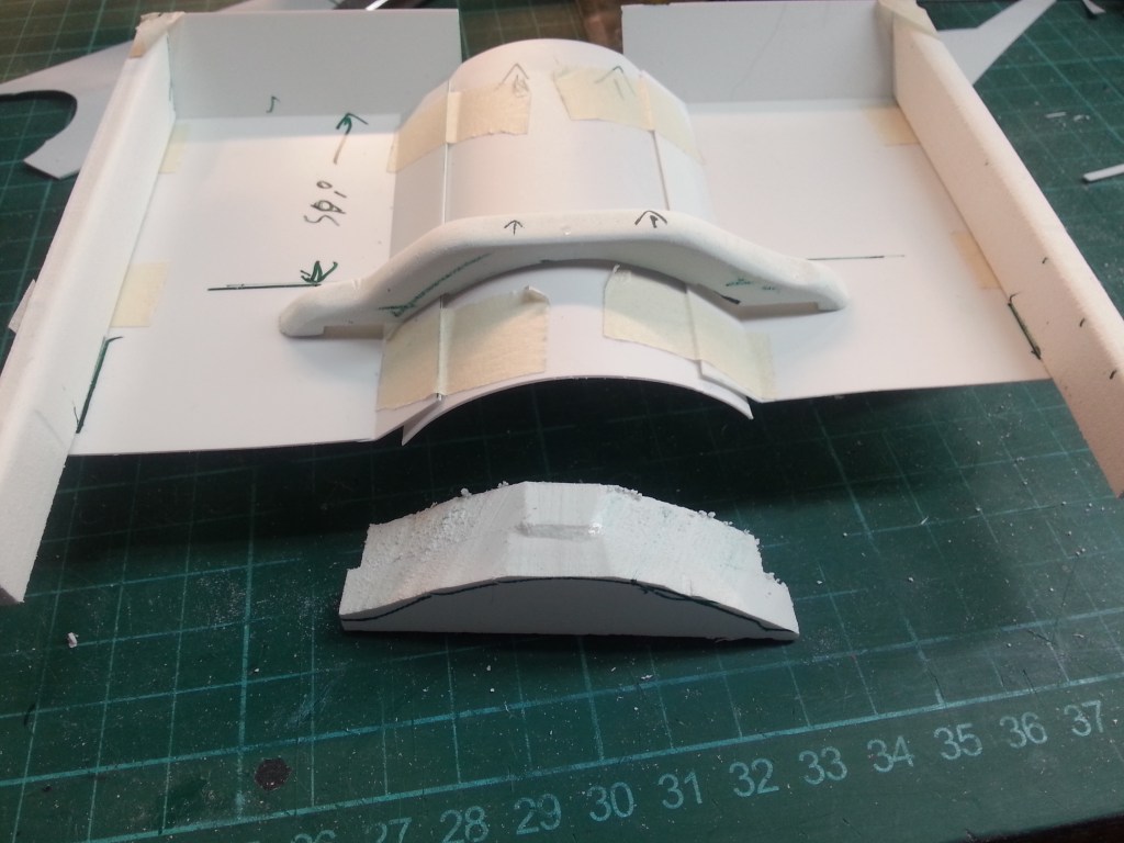 Ein weiteres Bauteil kam dazu. Der hintere Abschluss des Tunnelprofils. Aus zwei 8 mm starken Forex-Platten verklebt…