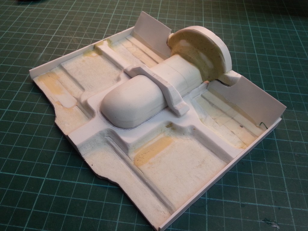 This is the new interior view. I am already thinking about how to build the next step. The driver’s footwell has to be extended to the front. In addition, the upper end of the gimbal tunnel has to be closed. An extremely difficult matter. Three-dimensional construction with ambition.