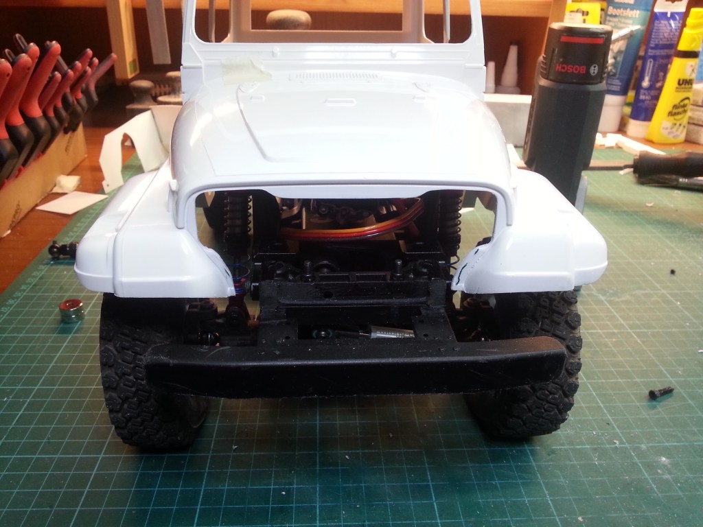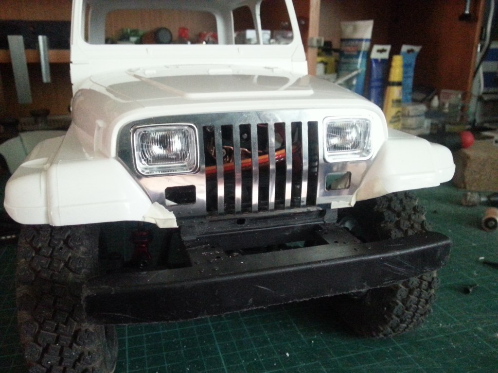 … um schließlich ein Neues zu bekommen. Nicht ganz ohne Nacharbeit. Der Knick unterhalb der Scheinwerfer, wollte sich nicht ohne weiteres an die Karosserieform anschmiegen. Mit etwas Nachdruck, ließ sich der Kühlergrill aber in seine neue Form bringen. Unabhängig von der ansprechenderen Optik, sind so auch Aufnahmen für funktionsfähige Blinker vorhanden.
