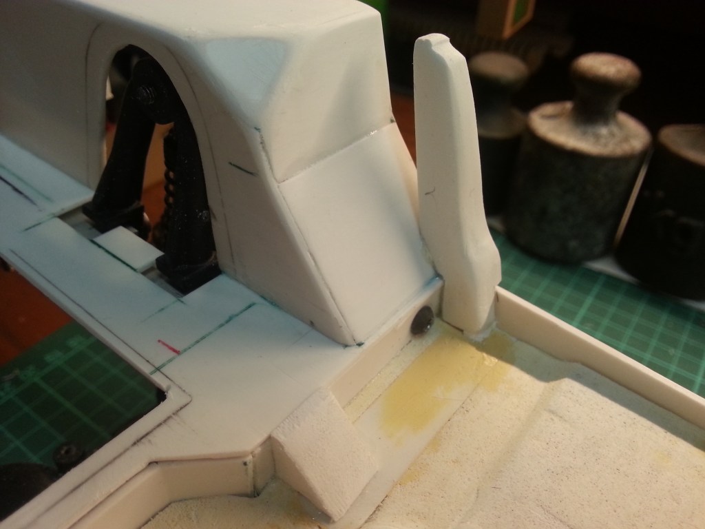 The reinforcing bridge over the gimbal tunnel has also been glued and sanded flatter. Milliput will still conceal the inaccuracies at the transitions. My work goal during the holidays!