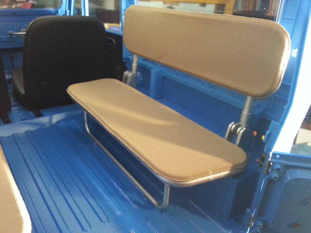 Two folding benches in the luggage compartment for the rear passengers, with soft, fabric-like upholstery.