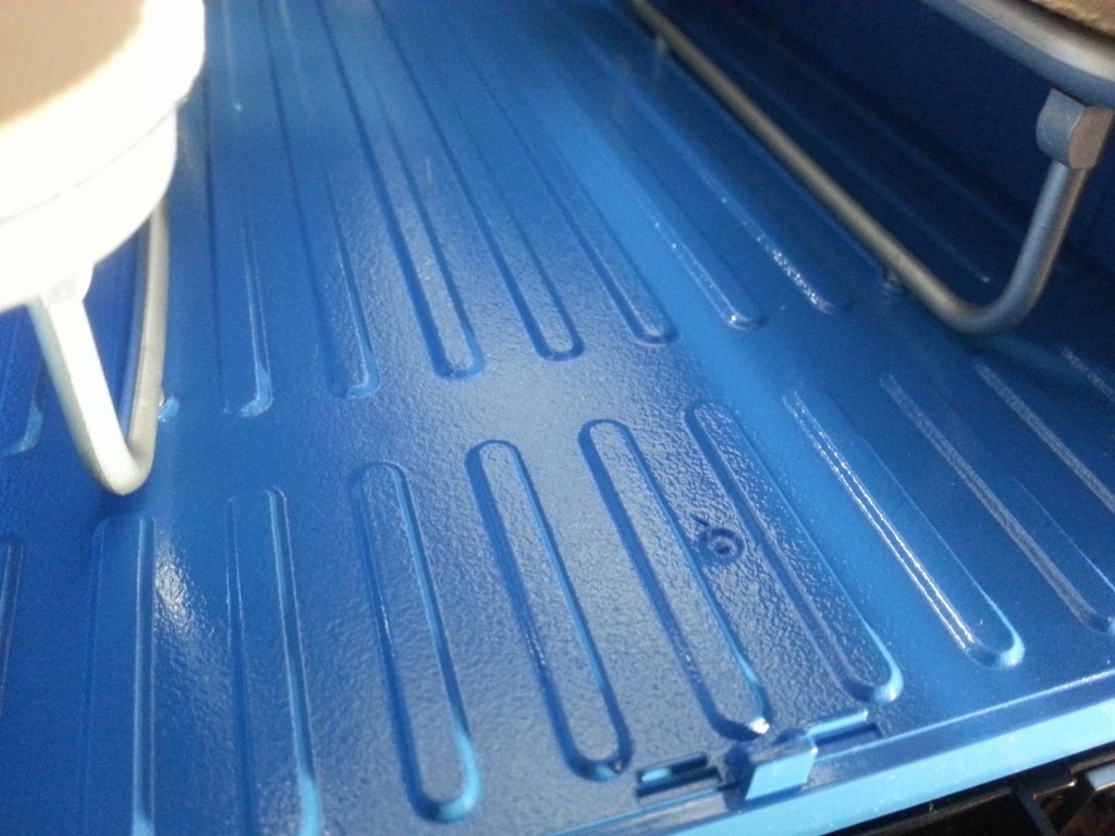 Gewollt oder ungewollt, das Bodenblech strukturiert und der Lack wie mit Unterbodenschutz vorbehandelt. Toll anzuschauen! Hier fehlen jetzt nur noch die unvergleichlichen Gebrauchsspuren eines unerbittlichen Arbeitsalltages.