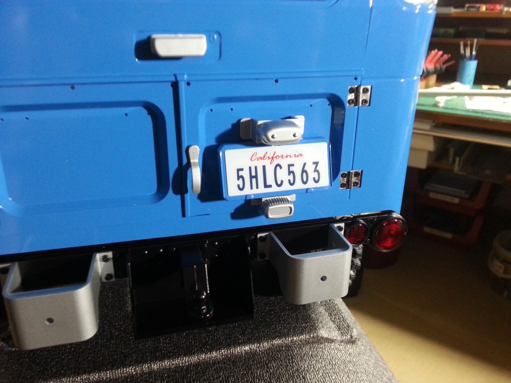 Auch die Rückseite und die Ladefläche haben viel fürs Auge und den Spieltrieb zu bieten. Rück-, und Blinklichter, hier leider noch ohne LEDs, eine detaillierte Nummernschildbeleuchtung, leider gänzlich ohne Lichtoption, eine dreiteilige Heckklappe. Zwei Türen unten und die nach Oben schwenkende Klappe. Die Stoßstangen sind rundum aus Kunststoff. Besonders hinten sind alle Teile von der Trittstufe mit Anhängekupplung und die Leuchten im bruchgefährdeten Bereich. Auf- und Abfahrten an steilen Rampen schaufeln viel Erdboden talwärts. Ich befürchte, dass so demnächst auch die ersten Kunststoff-Kleinteile dabei sein werden. 😏