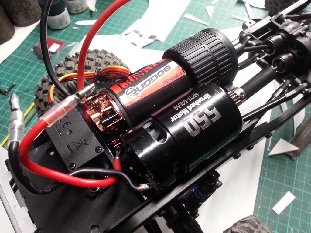 Ein weiteres Bauteil ist der Motor. Hier waren schon zu allen Zeiten günstige Motoren verfügbar und auch standardmäßig verbaut. So hat schon der verbaute 35T Motor ein ausreichendes Spektrum, um an steilen Rampen stehenzubleiben und genauso auch wieder anzufahren, Traktion vorausgesetzt. Das Problem der ausreichenden Traktion gilt aber für alle Motoren, ob günstig oder teuer. Die höhere Laufruhe und eine noch feinfühligere Umsetzung, der vom Fahrtregler gesteuerten Spannung, ist aber auch der Motorqualität zuzuschreiben. 5 Statoren und voll kugelgelagert, sind die wesentlichen Unterschiede zum Standardmotor. Auch dieser Mehrpreis ist spürbar und für mich unverzichtbar. Je geringer der Gesamtwiderstand des Antriebes, umso länger die Fahrzeit. Aber auch hier gilt, je nach Anspruch wäre auch ein Standardmotor akzeptabel.