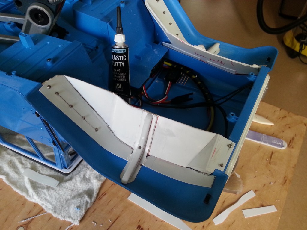 Im letzten Beitrag habe ich bereits den Bau der Grundform des Innenkotflügels vorgestellt. Durch die Herstellung und Verklebung von drei Hauptbestandteilen, wäre eigentlich das Ziel schon fast erreicht.