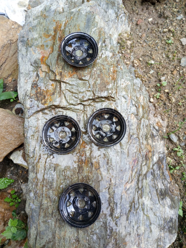 Der später zum Einsatz kommende Radsatz erhält gerade eine Sonderbehandlung. Ein neuer Satz schwarzer Stahlfelgen, wurde mit Schmirgelpapier bearbeitet und liegt bereits seit einer Woche, täglich bewässert, zum Rosten im Freien. Damit habe ich wohl einen neuen Tiefpunkt erreicht…🙄
