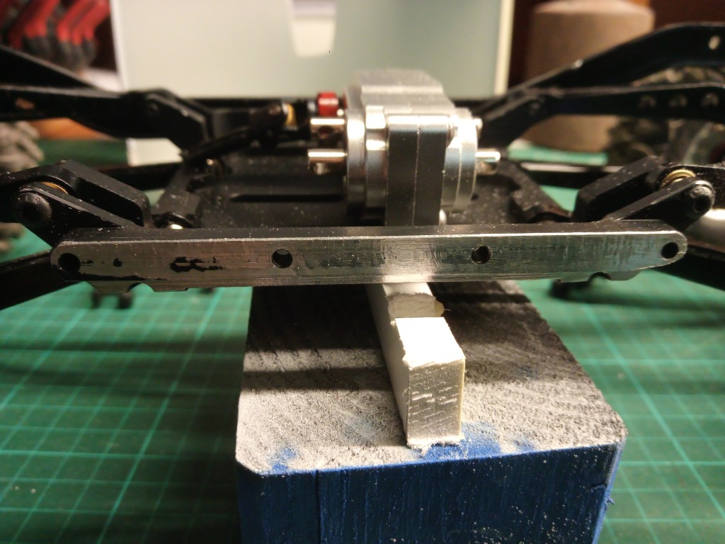Die hier verwendeten Achsen, werden von Injora als Nachrüstteil für den Axial Wraith angeboten. Mein Comanche hat einen U-Profil-Leiterrahmen. Diese Kombination, so musste ich schnell erkennen, ist nicht kompatibel. Erste Versuche die langen Fahrwerksstreben (Links) des Axial Wraith mit der schmalen Platte des zentralen Verteilergetriebes (Skid Plate) vom SCX10 zu kombinieren, scheiterten an der großen Spreizung. So folgerte ich daraus, dass die Kombination von Wraith Links und der viel breiteren Skid Plate des Wraith eine Lösung sein könnte. Diese Annahme trifft auch tatsächlich zu, dass kann ich vorwegnehmen, aber der SCX10 Leiterrahmen und die Skid Plate sind ebenfalls nicht kompatibel. Was ist darunter zu verstehen? Anhand von Bildern versuche ich das einmal zu erläutern.