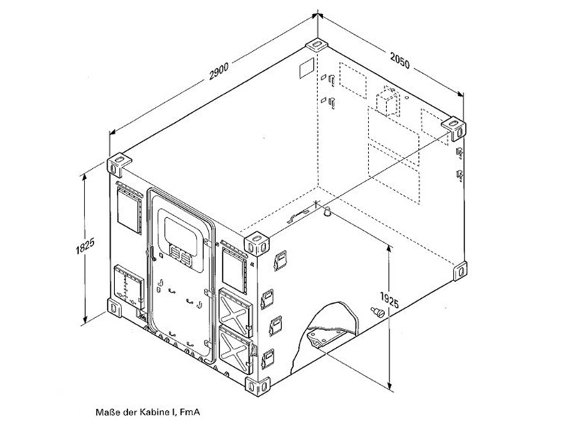 The cab should not be the only body on the chassis of the Rat Comanche. A Mad Max-style vehicle, and one with an empty loading area, leaves room for speculation. I can also see a swap-body platform before my eyes. This way, the play and tinkering instinct can be further increased by variations. So I surfed the Internet again to do some research. I particularly liked various templates. The first was a Bundeswehr shelter. A very compact container known as type FM1. Below is a drawing with dimensions. The right place for a lone rider. Functionally limited to the bare essentials and removable if required.
