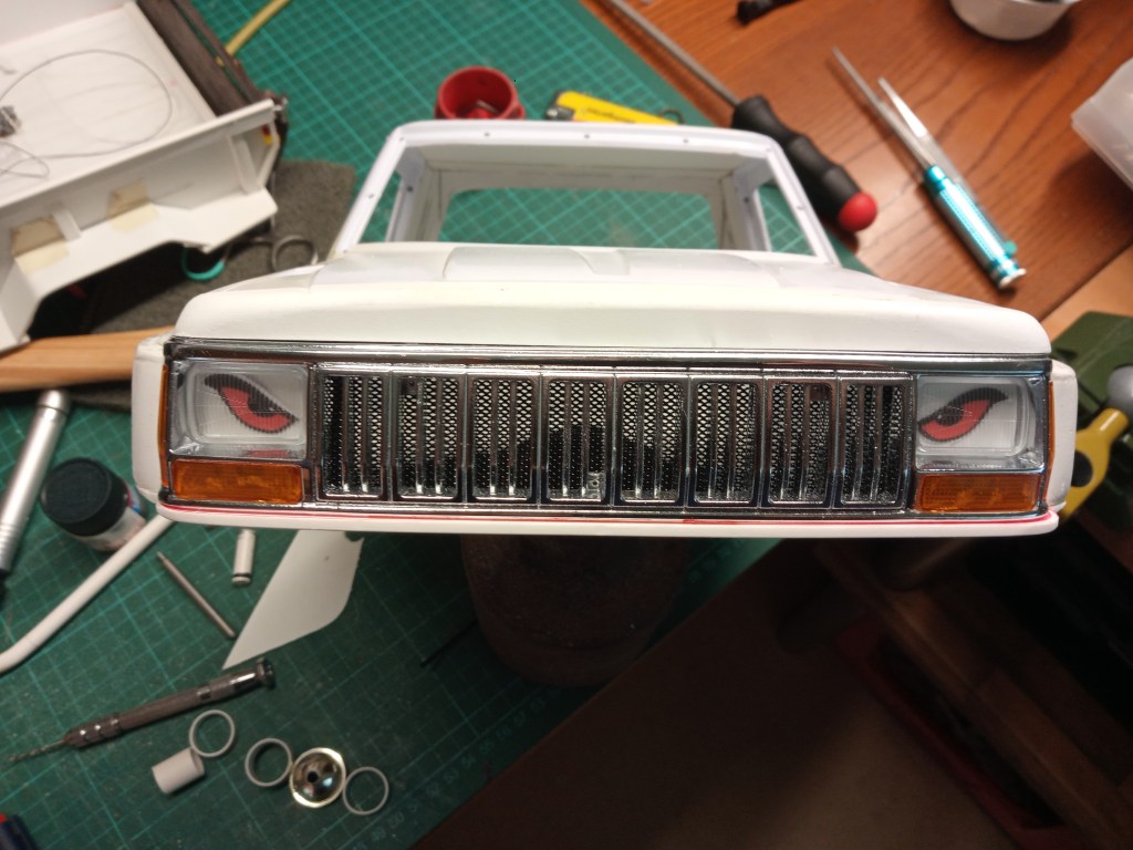 Too inconspicuous and pale, so version 2, also with clear lenses, was chosen. The following picture became part of a longer discussion in the RockCrawler forum, where my build reports are also posted. Unfortunately there is dead silence here! There was finally a clear vote, a so-called evil eye was missing.