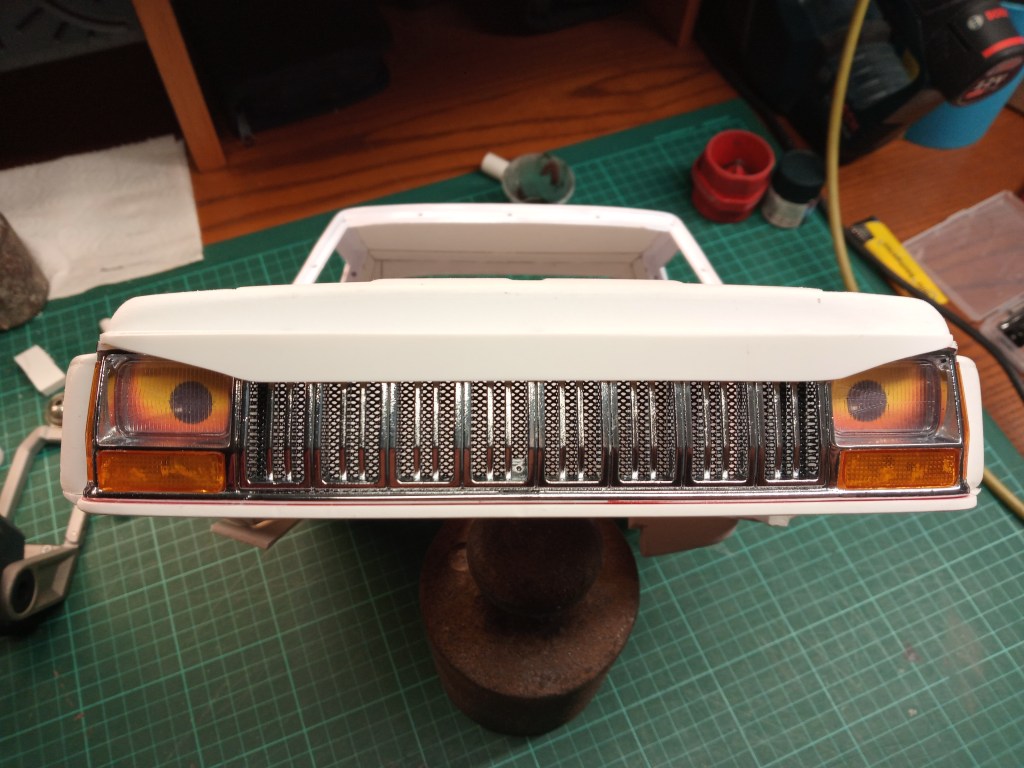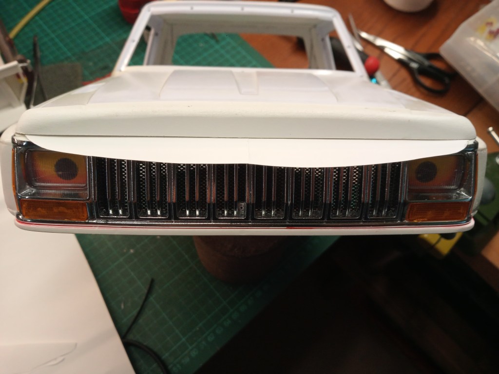 Meine Interpretation eines bösen Blicks für den Comanche. Das fand nun wieder die gewohnte Zustimmung und mir blieben jetzt noch zwei Baustellen. Für die Kante vom bösen Blick zur aufsteigenden Motorhaube, muss noch ein Übergang gefunden werden. Und ein Licht muss in den Scheinwerfer, um die Augen teuflisch leuchten zu lassen. Das zukünftige Fahrlicht kommt hier von einer anderen Stelle. Daran arbeite ich noch gedanklich.