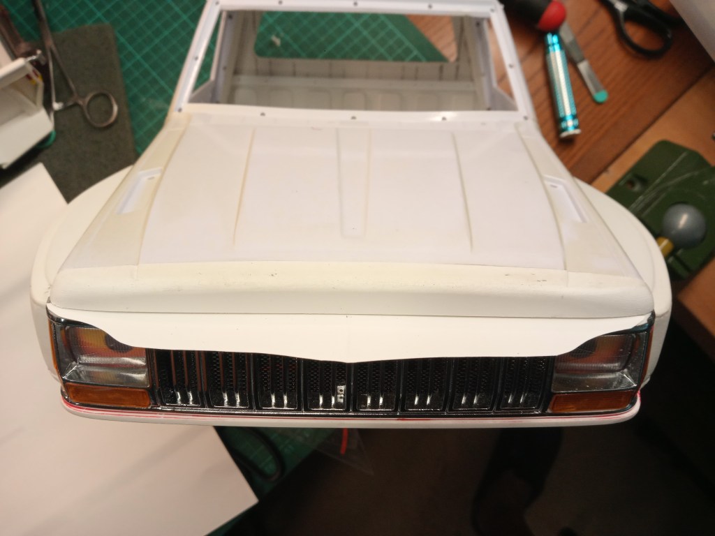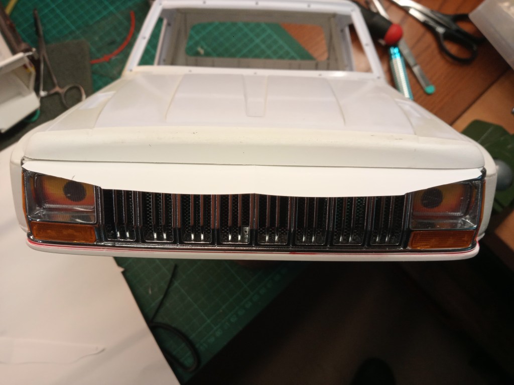 My interpretation of an evil eye for the Comanche. This now met with the usual approval and I was left with two construction sites. I still have to find a transition for the edge from the evil eye to the rising hood. And a light has to be installed in the headlights to make the eyes glow devilishly. The future driving light comes from a different place. I’m still working on that mentally.