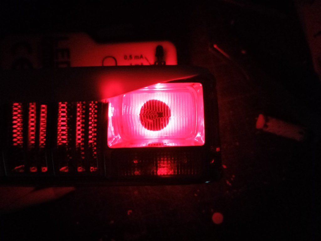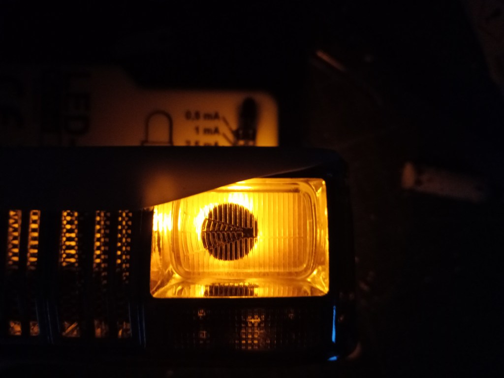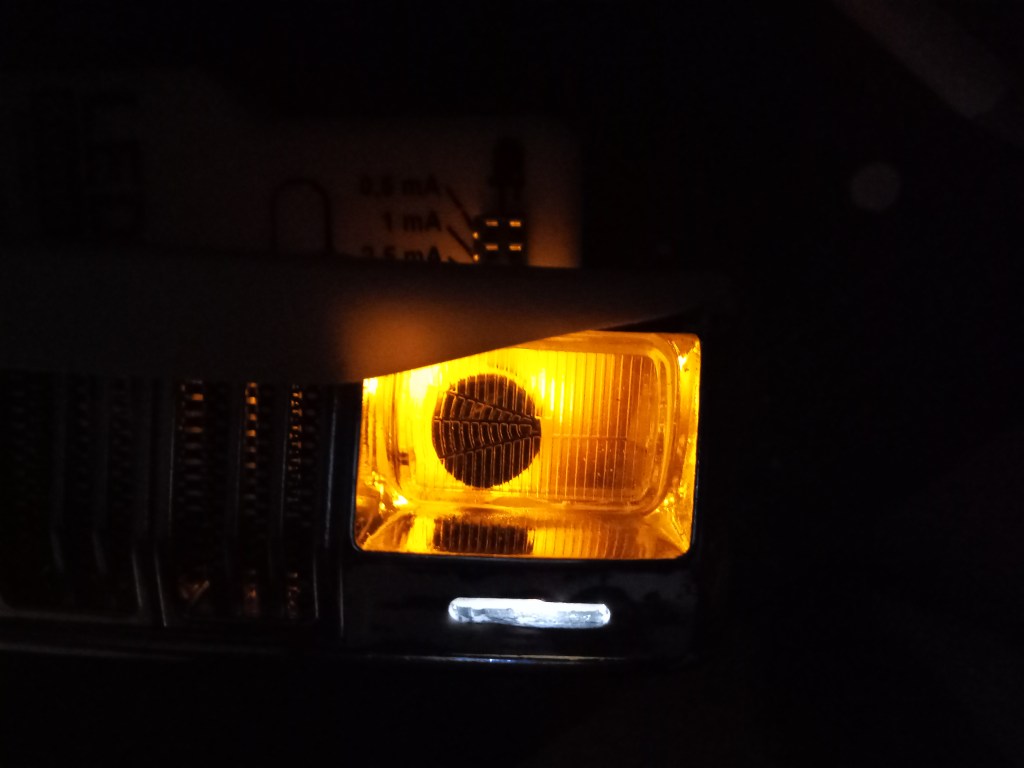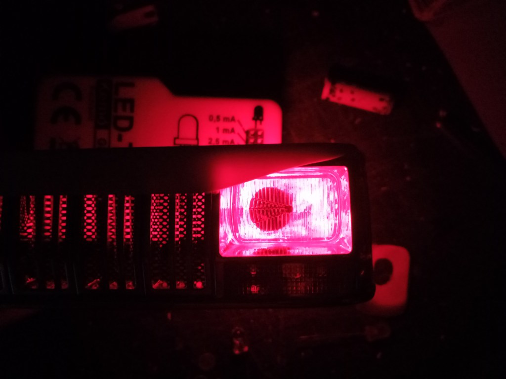An ingenious suggestion from the forum also provided a new approach here. The parking lights on the Cherokee and Comanche are rectangular. This gave rise to the idea of installing a camouflage light there. Camouflage lights are actually a component of military vehicles and should not be a recognizable target for the enemy due to their arrangement far down on the vehicle. The lighting is so weak that the driver can only see a few meters in front of the vehicle. To complete the picture, there is often a white bar cross, indirectly illuminated, on the vehicles in the area of the rear axle. The driver behind can use this as a guide.