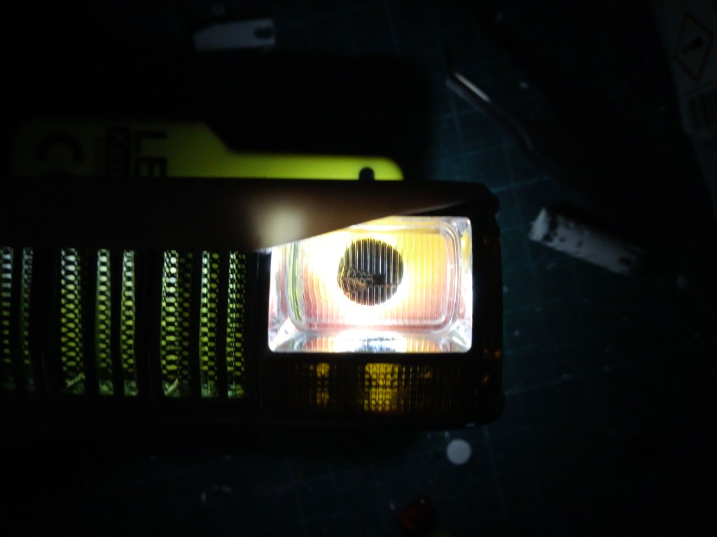 Zu unauffällig und blass, also Version 2, ebenfalls mit klaren Gläsern. Das nachfolgende Bild wurde Teil einer längeren Diskussion im RockCrawler-Forum, wo meine Bauberichte parallel mitgeschrieben werden. Hier herrscht da leider Totenstille!? Es gab schließlich ein eindeutiges Votum, es fehlt ein sogenannter böser Blick.