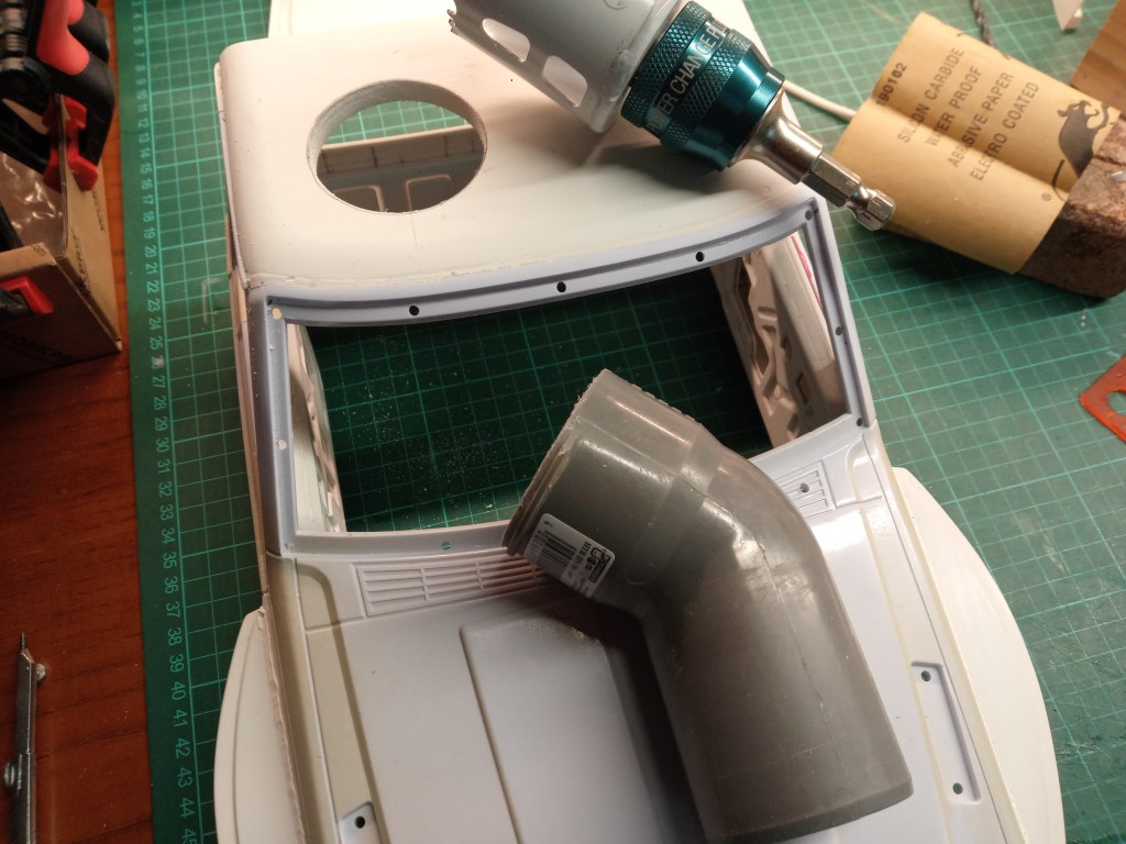 I wanted to add a special feature to enhance the cab and the model as a whole. My thoughts led to a hole in the roof skin.