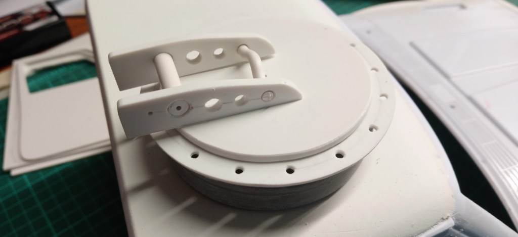 Um die Laschen zu führen, wurde zwei Kleinteile hergestellt und auf der Lukenunterseite verklebt.