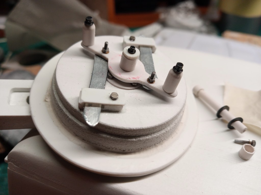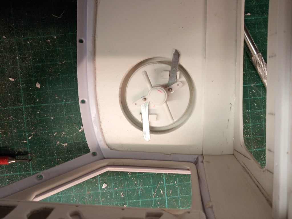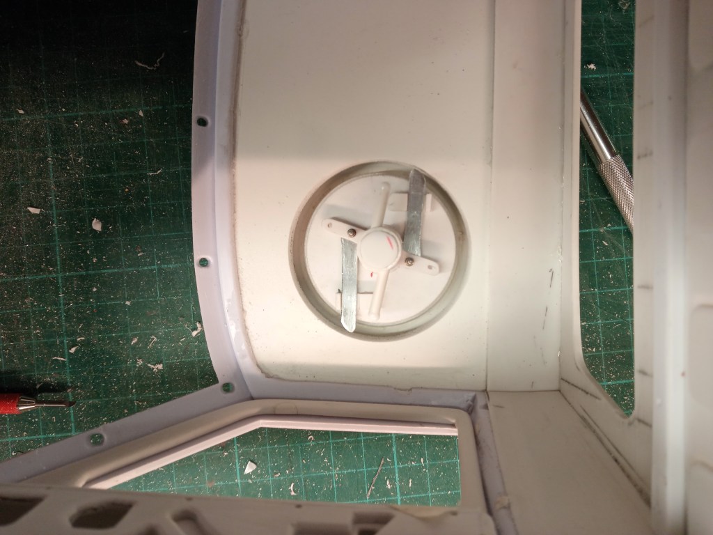 Finally, detailed pictures of the cover. Inside, the vertical axis was secured with a tube sleeve, washer and an M1.2 screw. The picture also shows the two handles for locking the hatch.